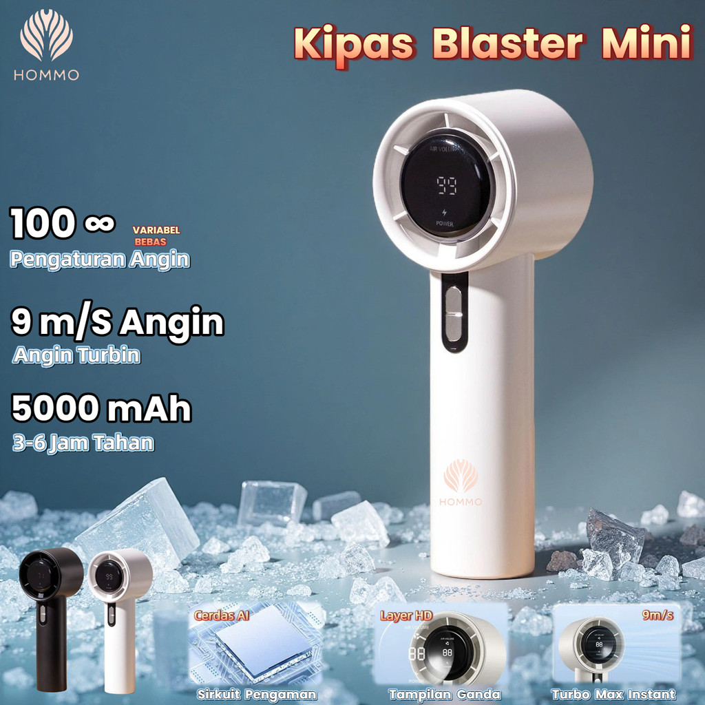 HOMMO Kipas Angin Portable USB Modis Mini Fan Digital 100 Speed Turbo 9m s 3 6 Jam Tahan Lama FB09