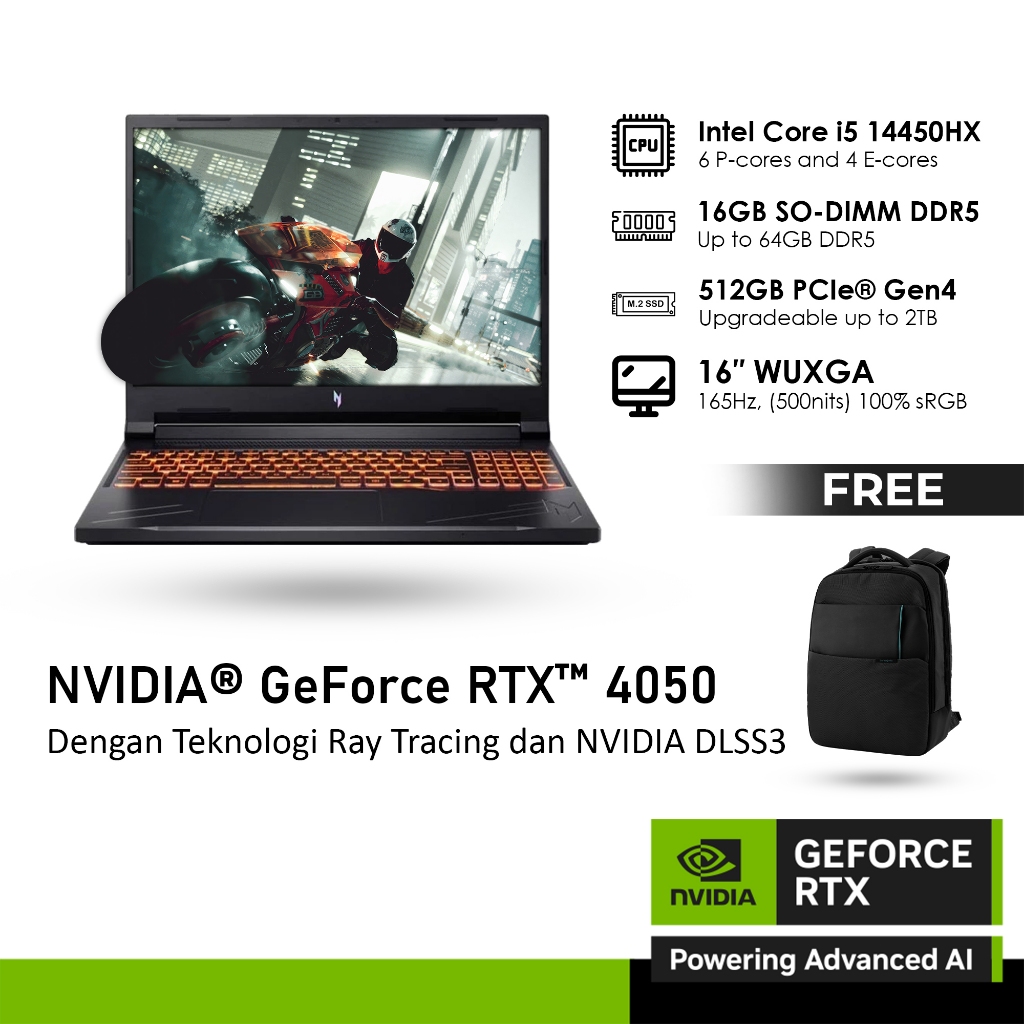 ACER NITRO V 16 ANV16-71-50MN GeForce RTX™ 4050 6GB - i5 14450HX 16GB 512GB WINDOWS 11 16.0WUXGA