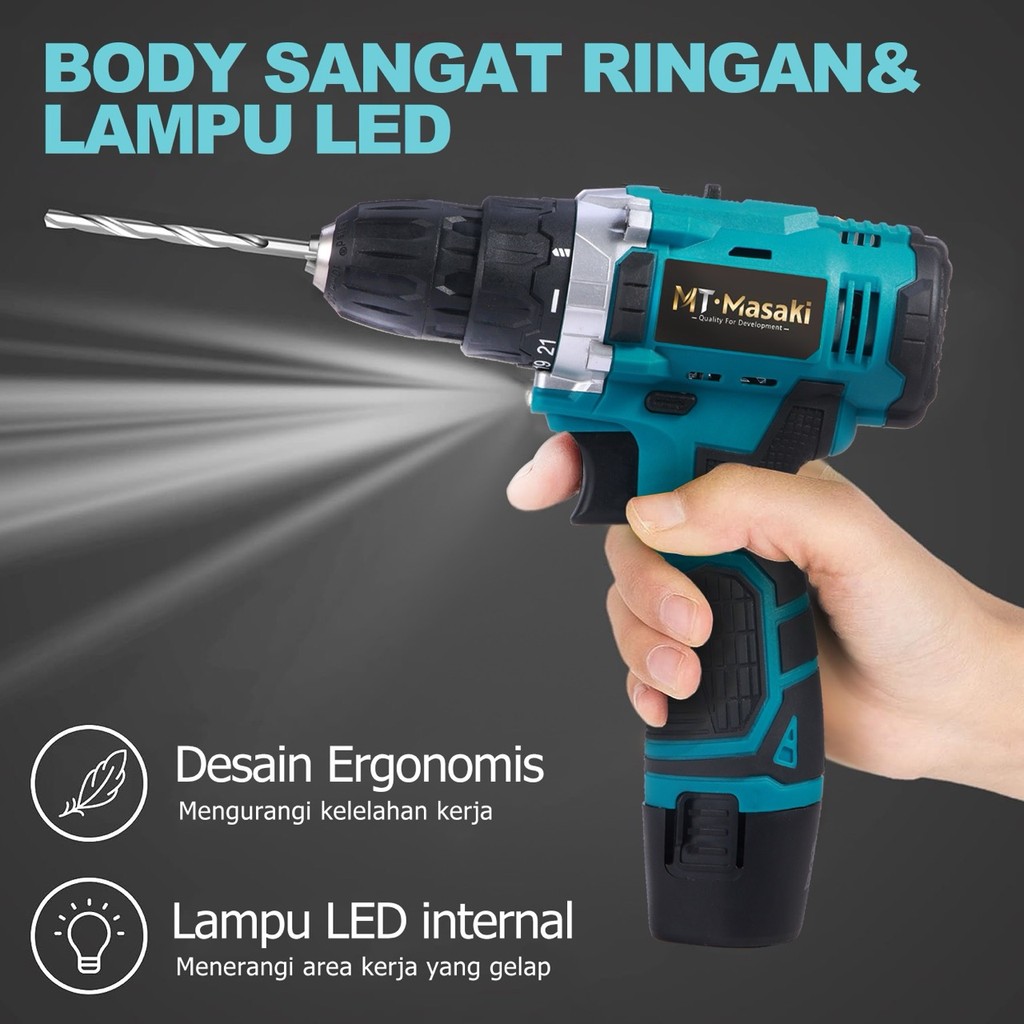 MTMASAKI Mesin Bor Baterai Tangan Cordless Drill 12VF MT-8100 / bor baterai / bor listrik / bor impact