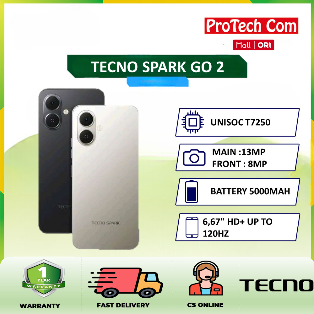TECNO Spark Go 2 3+3/64GB | 4+4/64GB - 5,000mAh Charging speed 18W - Resmi