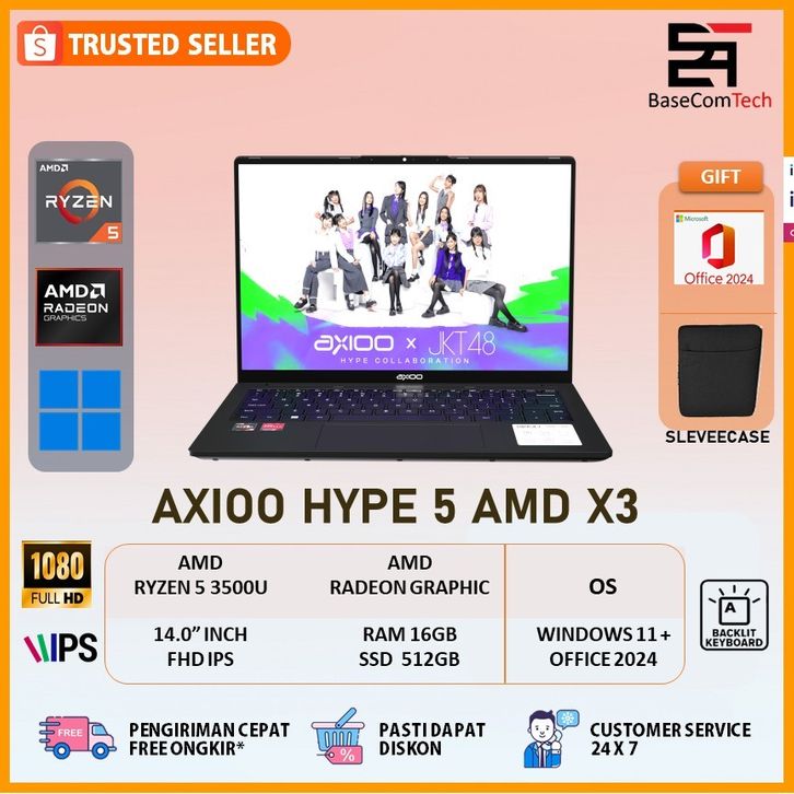 Axioo HYPE 5 AMD X3 AMD Ryzen 5-3500U RAM 24GB/512GB 14.0 inchi FHD IPS Windows 11