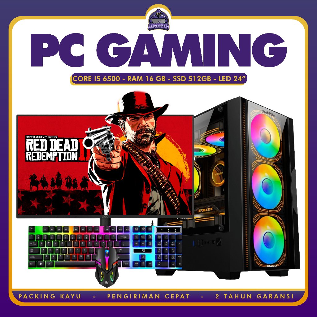 PC RAKITAN GAMING I5 6500 | RAM DDR4 16 GB | VGA GTX 1660 SUPER 6 GB | LED 24 INCH CURVED 100 HZ SIAP STREAMING