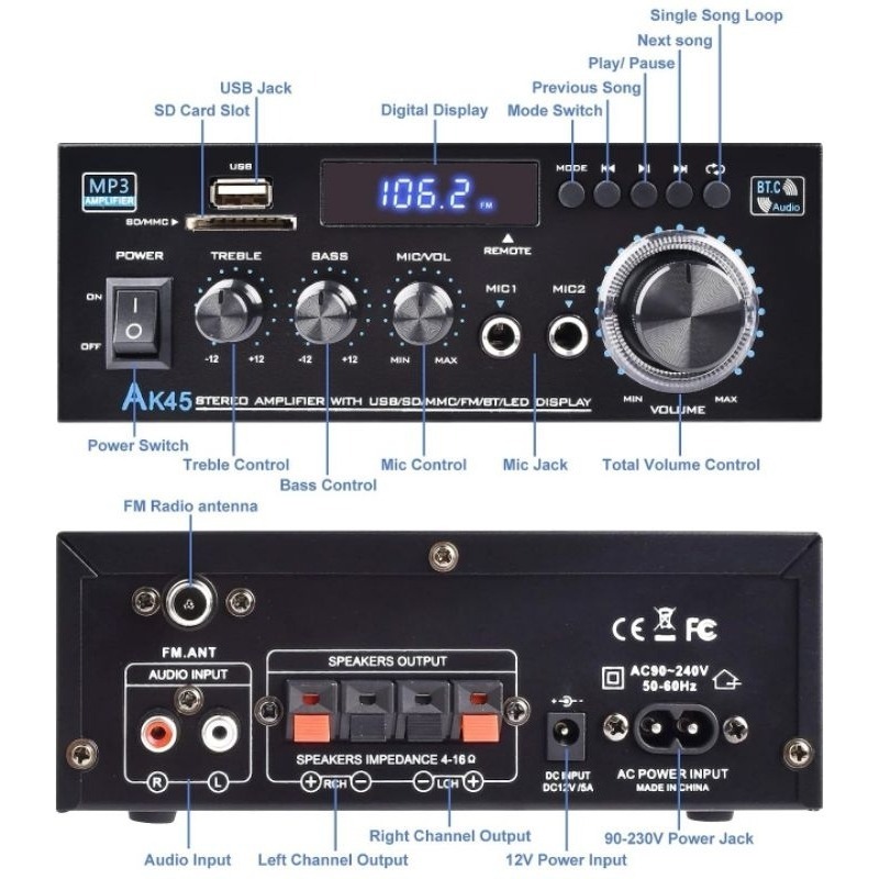 Kerndy Ak-45 12volt Compact Size Audio power Amplifier Portable Sound Amplifier Ak45