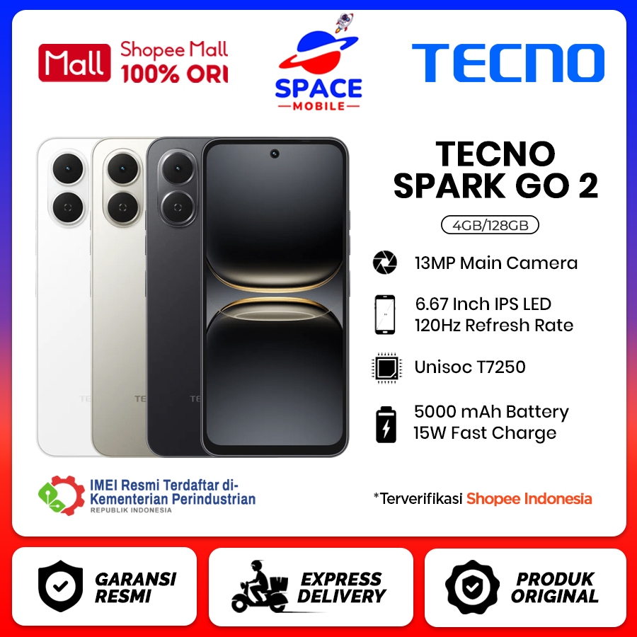 Tecno Spark Go 2 [4GB+128GB] - Resmi 1 Tahun