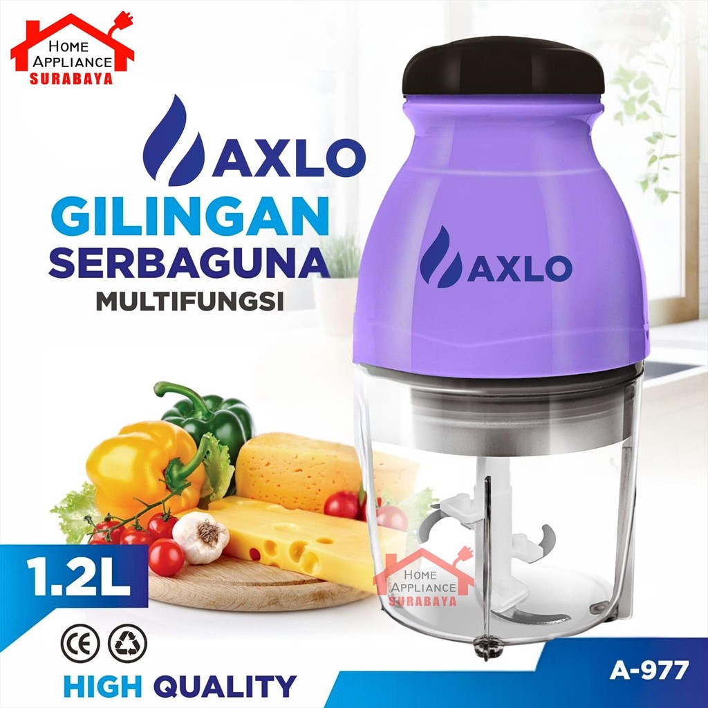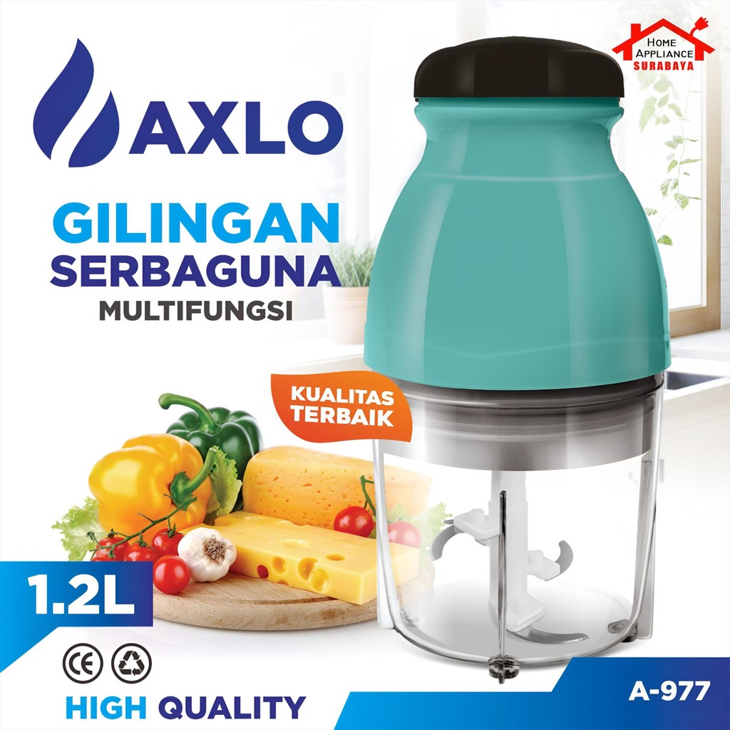 Axlo Food Chopper Multifungsi 1.2 Liter A-977 - Gilingan Blender Kapsul - Pemotong Bumbu Elektrik Serbaguna 1.2L A977