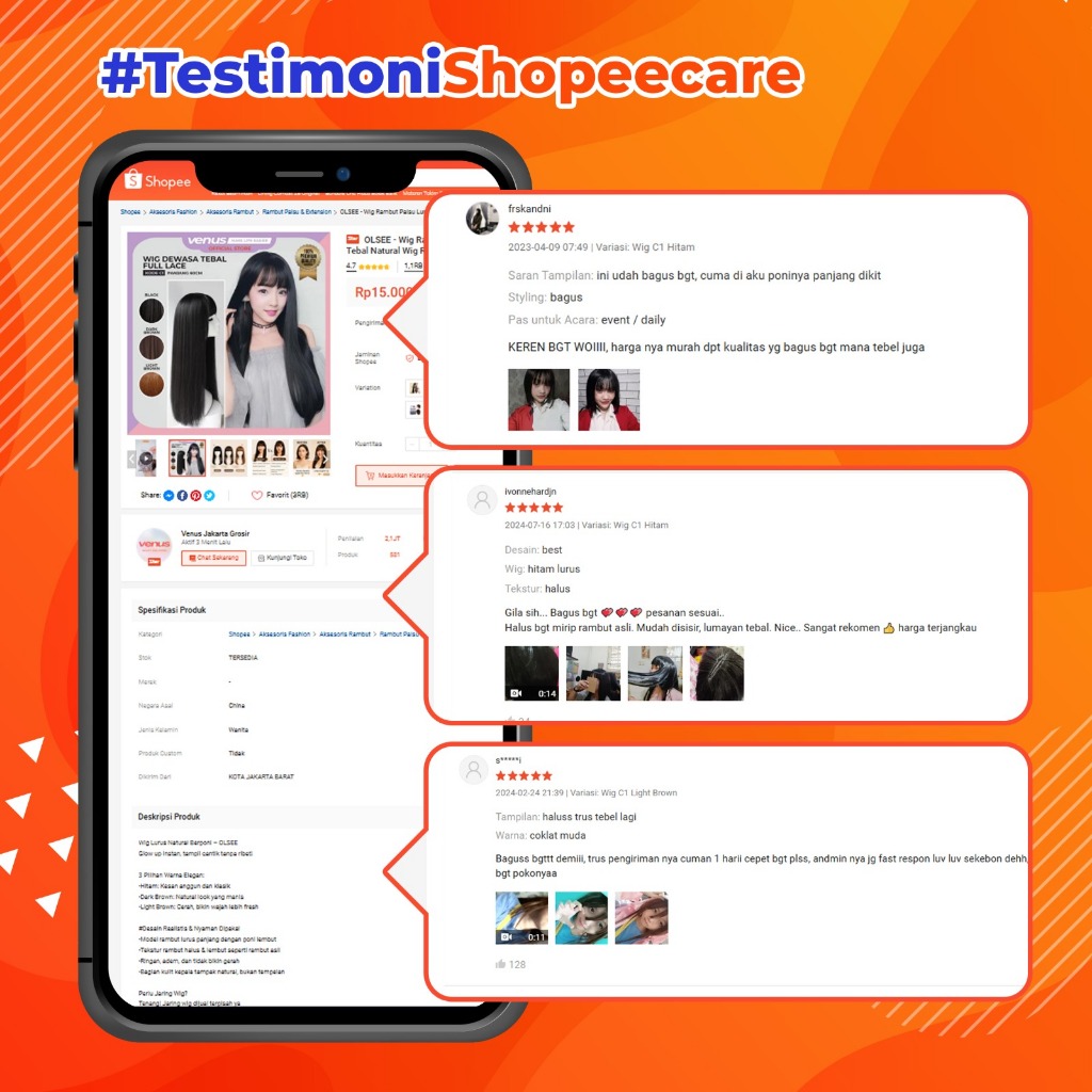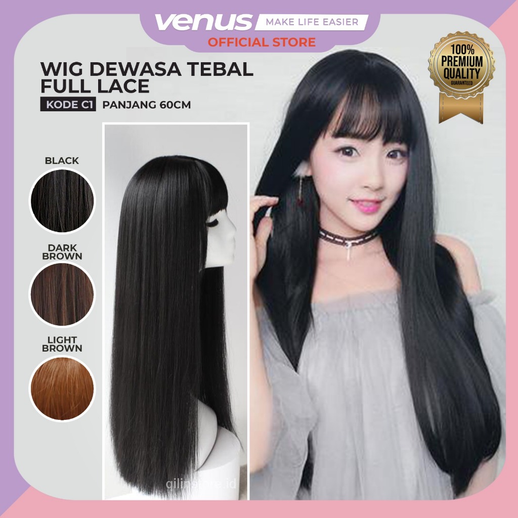 OLSEE - WIG RAMBUT PALSU LURUS PANJANG WIG FULL LACE DEWASA TEBAL NATURAL WIG RAMBUT PALSU DEWASA MODEL LURUS PANJANG C1 S697