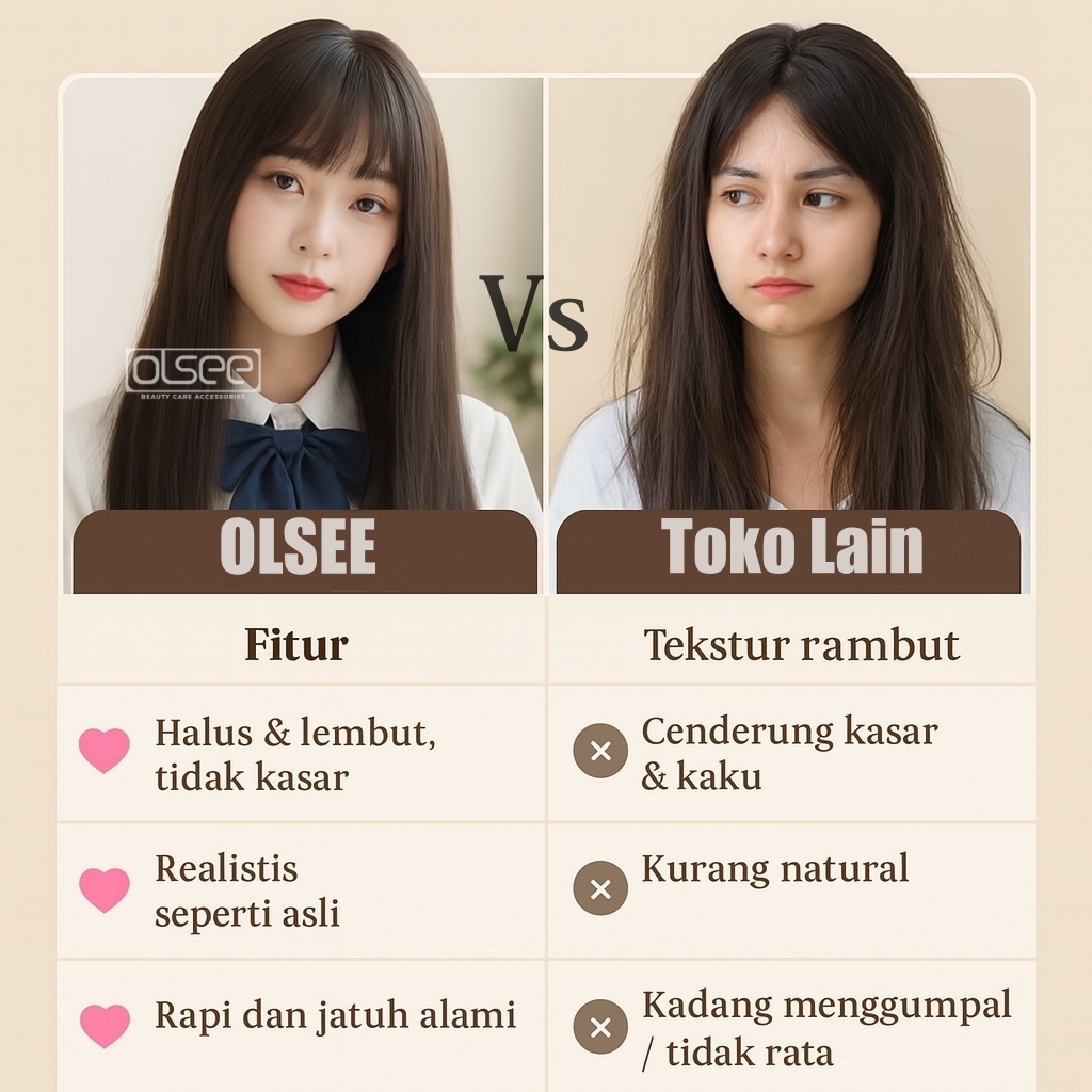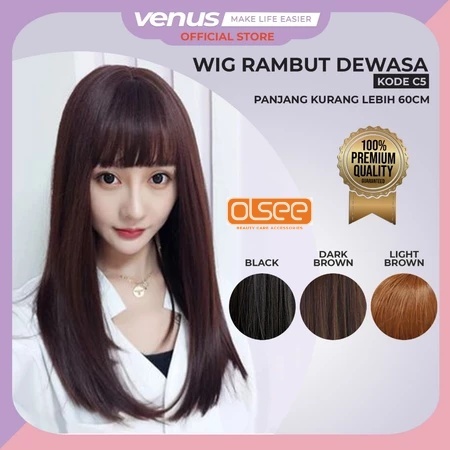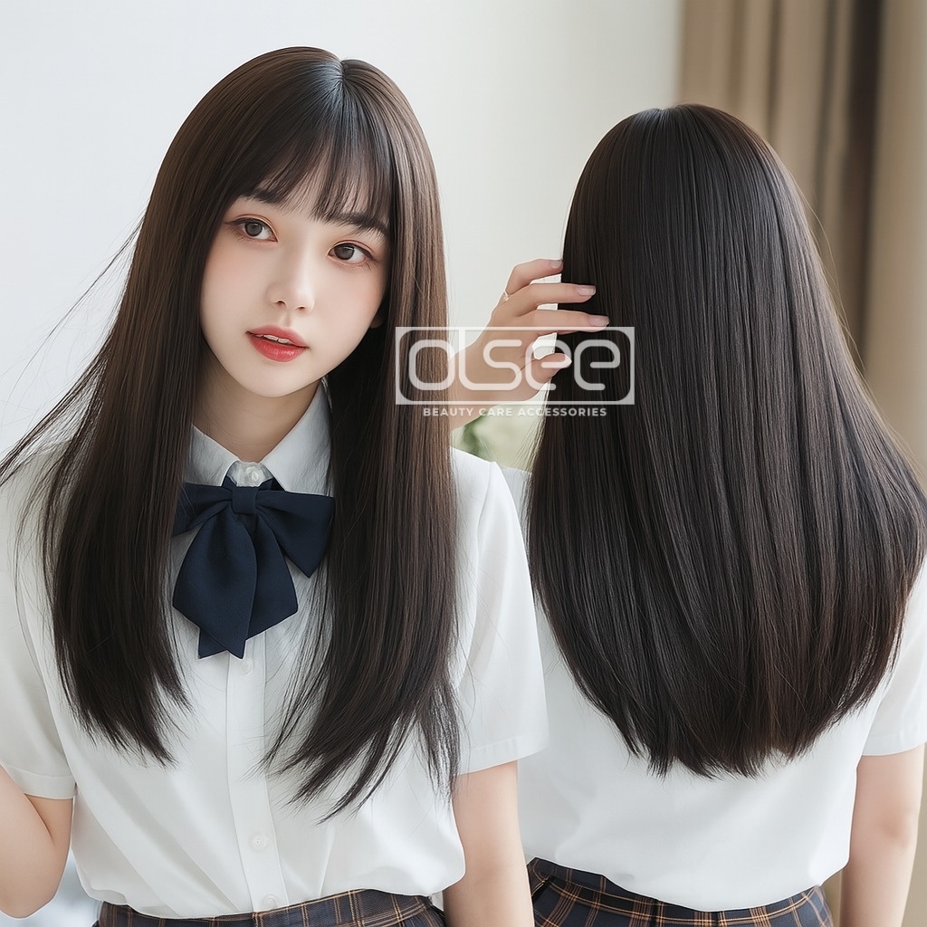 OLSEE - WIG RAMBUT PALSU LURUS PONI DEPAN FULL LACE PANJANG BERGELOMBANG KOREAN LOOK WANITA DEWASA C5 S697