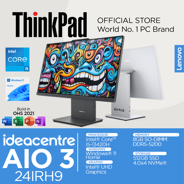 Lenovo IdeaCentre AIO 3 24IRH9 Core i5 13420H 8GB 512SSD Windows 11 OHS 24 Inch FHD IPS 60ID 61ID