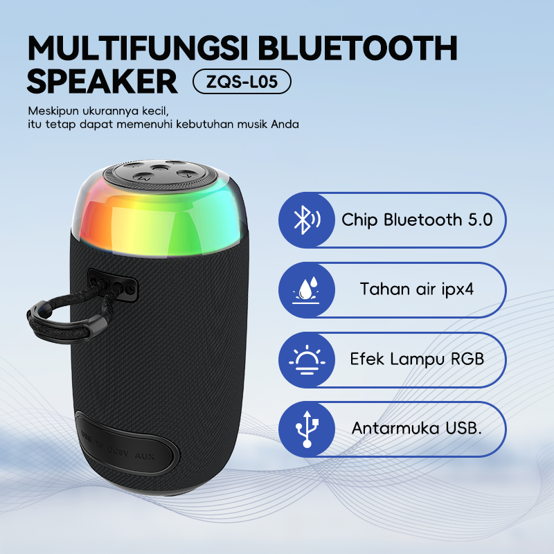 MUSIK BOX BLUETOOTH MINI L05 PORTABLE 5.3 RGB WATERPROOF IPX4 1200MAH SALON AKTIF BLUETOOTH FULL BASS SPEAKER PORTABLE