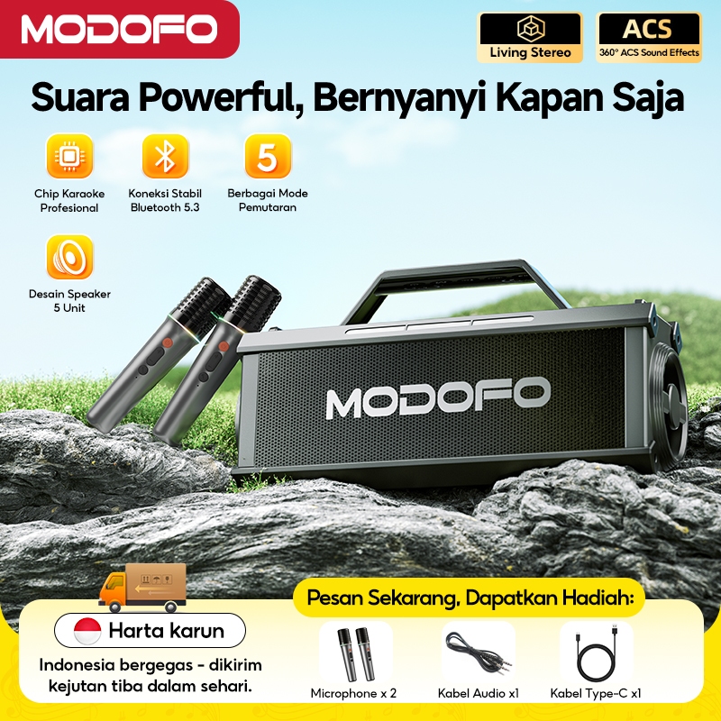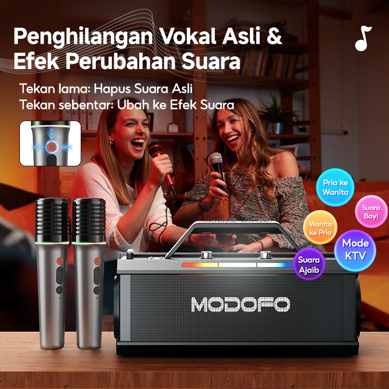 MODOFO Speaker Bluetooth Karaoke Advance 2 Mic Besar Set Lengkap Portabel Wireless Super Bass