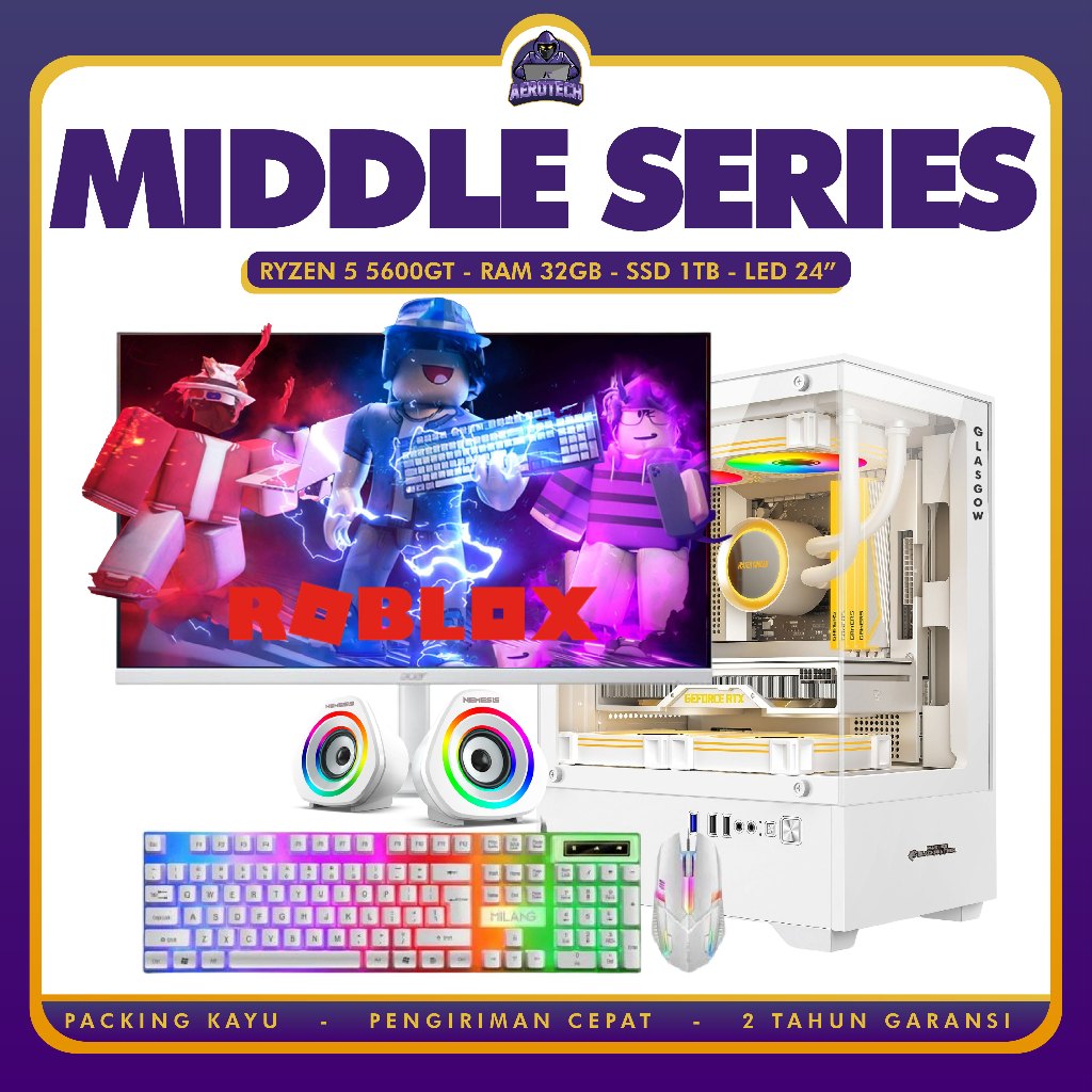 AEROTECH MIDDLE PC RAKITAN GAMING RYZEN 5 5600GT RAM 32 GB / HDD 1TB / SSD 1 TB LED 24 INCH FULLSET
