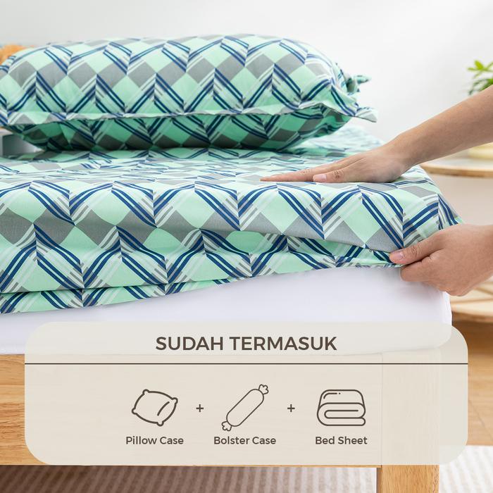 Seprei Motif Geometris Dengan Sarung Bantal dan Sarung Guling - Motif Kotak Pastel Color - KQ1001 120X200CM