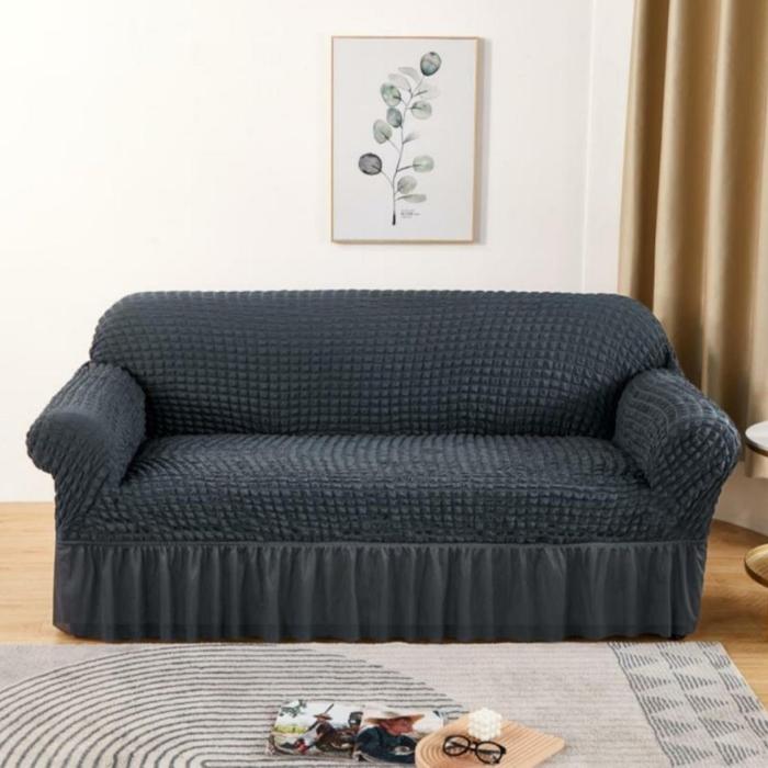 Sofa Cover With Skirt Stretch / Sarung Alas Penutup Sofa Renda Elastis - Grey Skirt 1 Seater