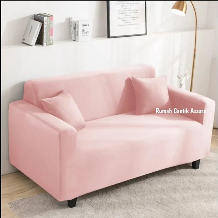 Cover Sofa Polos Sarung Sofa 1 2 3 4 Seater Elastis Bahan Polyester - Pink 1 Seater