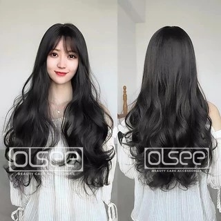 OLSEE - WIG RAMBUT PANJANG WANITA BERGELOMBANG KOREAN STYLE WIG CURLY PONI DEPAN RAMBUT PALSU TEBAL & LEMBUT C2 S697