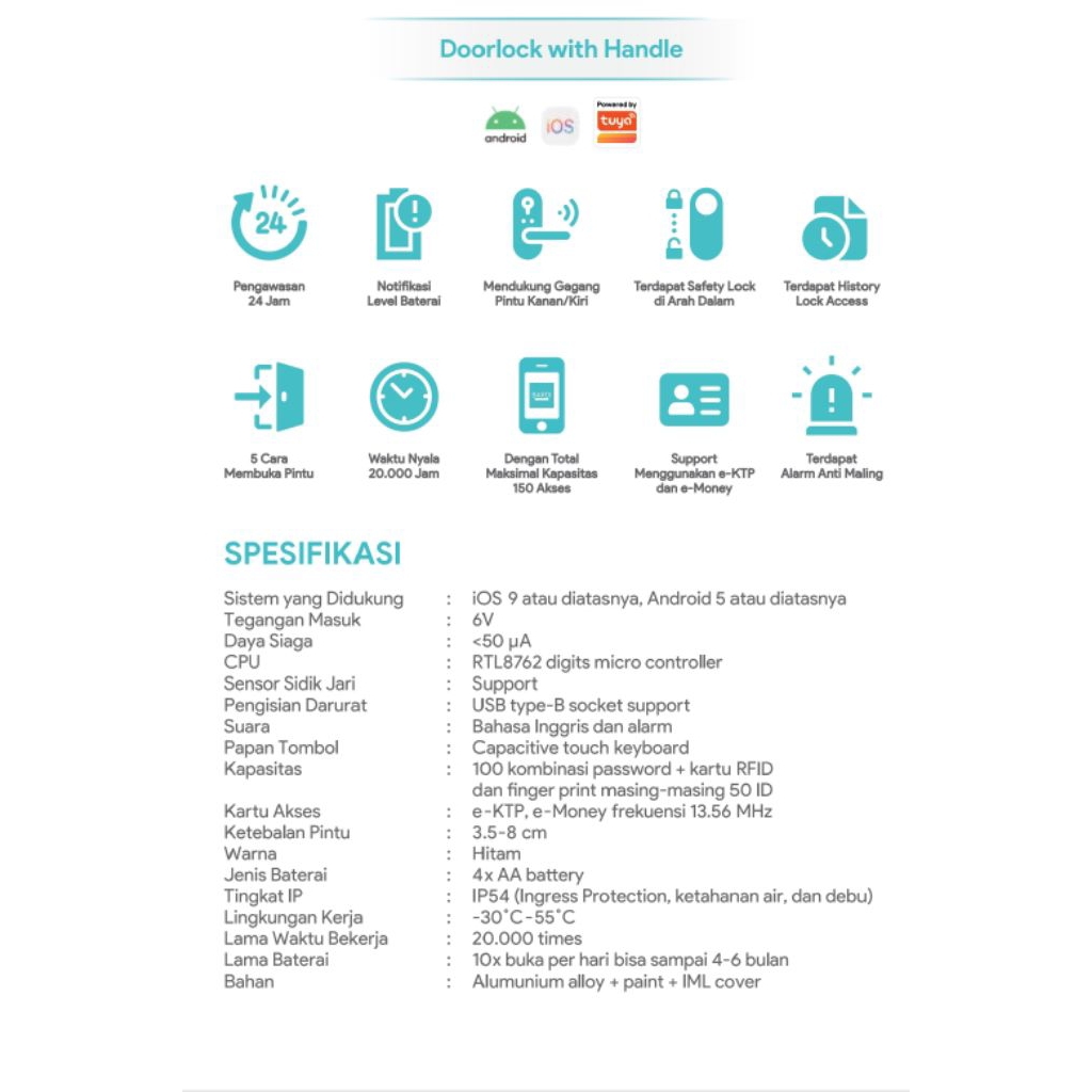 BARDI Smart Home Door Lock with Handle RFID - Fingerprint Waterproof IP 54