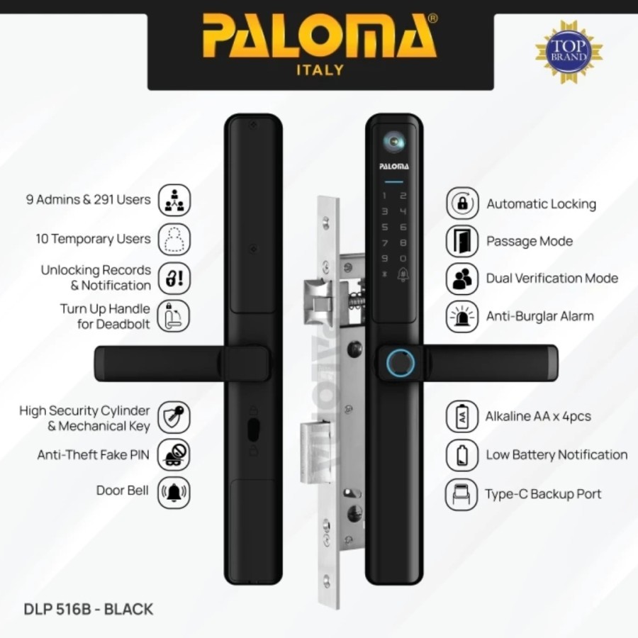 PALOMA DLP 516 516B 516S Digital Lock Smart Slim Door Frame Aluminium WiFi + Camera Matte Black Silver - Matte Black