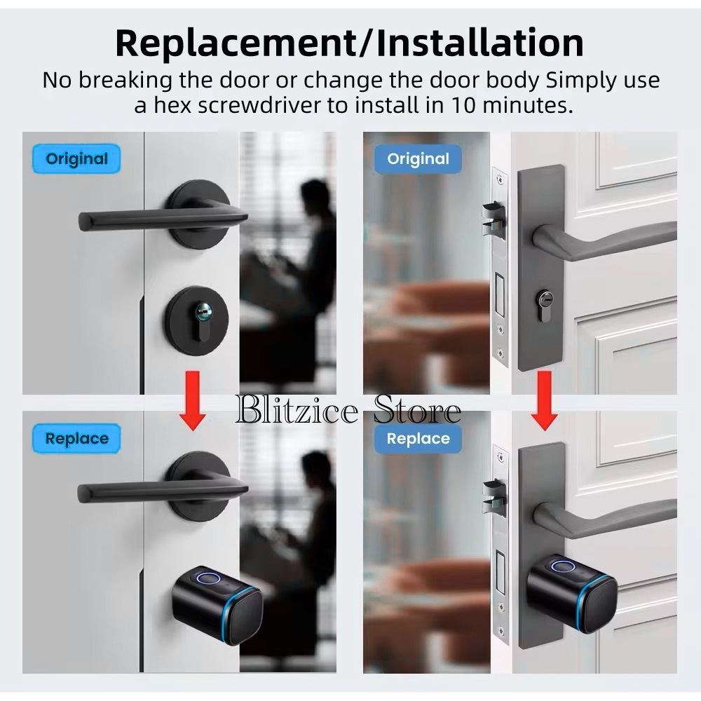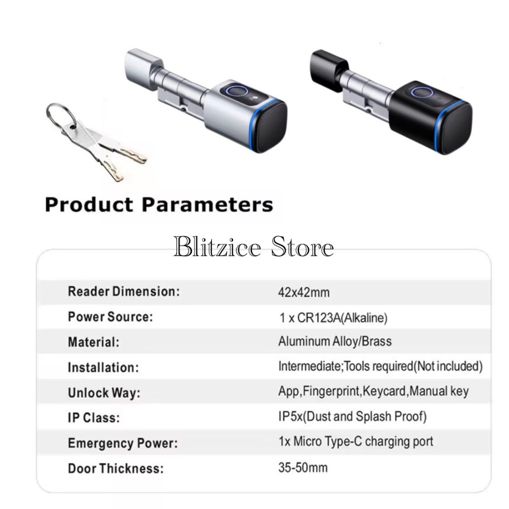 Smart Cylinder Lock Door Fingerprint App Silinder Kunci Pintu Digital
