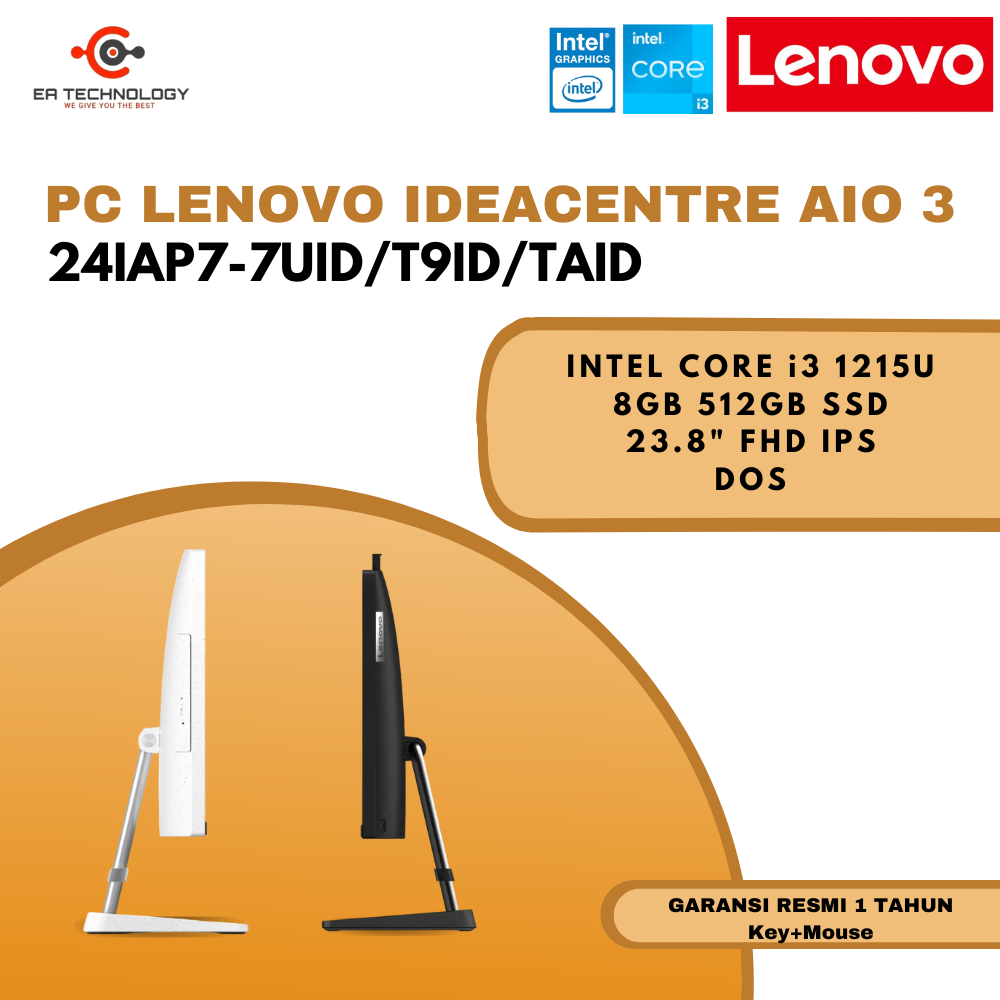 PC LENOVO AIO 3 24IAP7-7UID/T9ID/TAID Core i3-1215U 8GB 512SSD 23.8" FHD IPS DOS