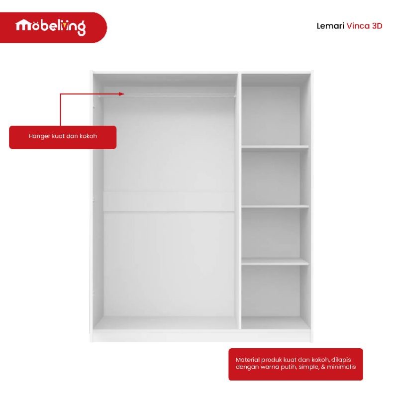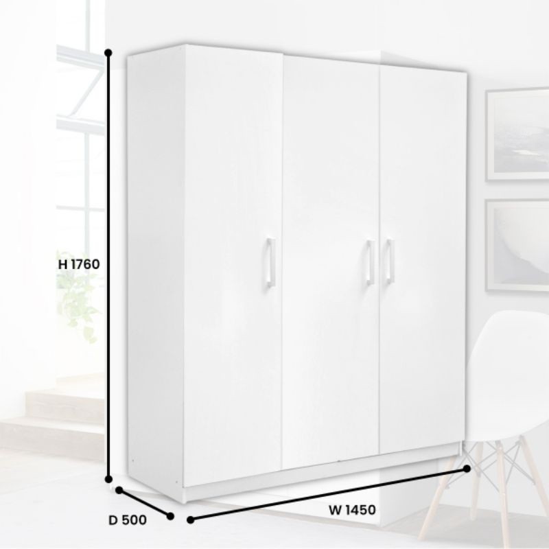 Mobeliving - Lily 3D Furniture 3D Lemari 3 Pintu Full Putih baru Minimalis