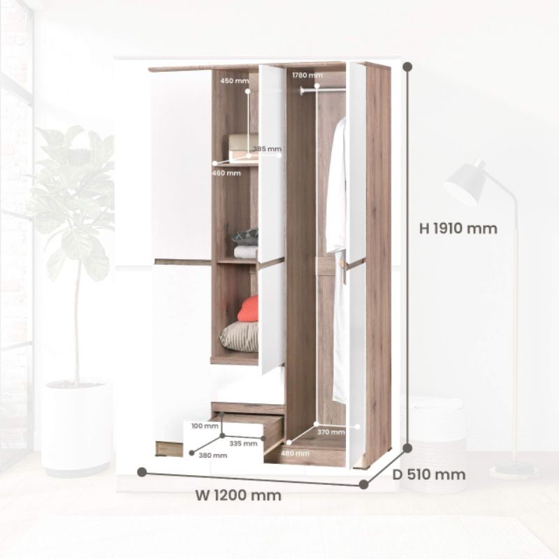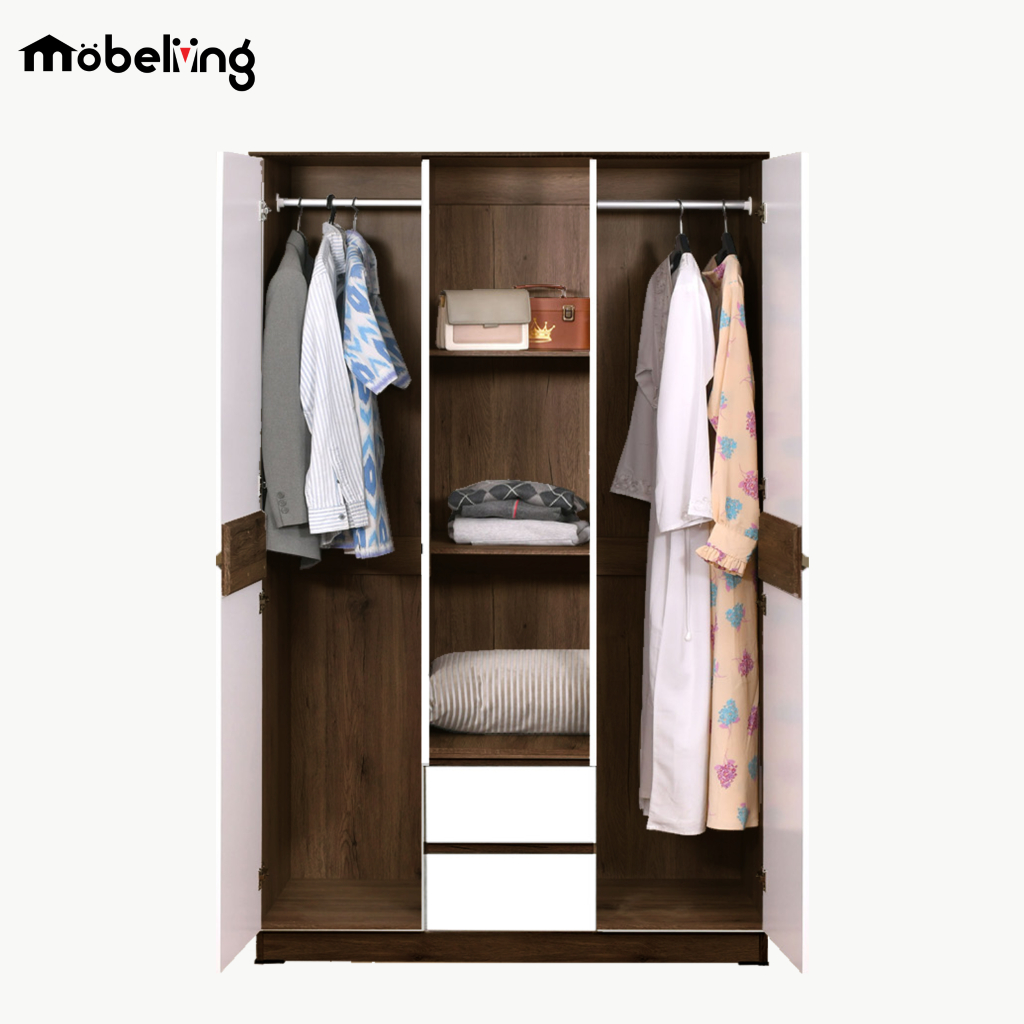Mobeliving - Lemari Pakaian 3 Pintu Minimalis - Lemari Pakaian Handless - Santorini 3 Pintu
