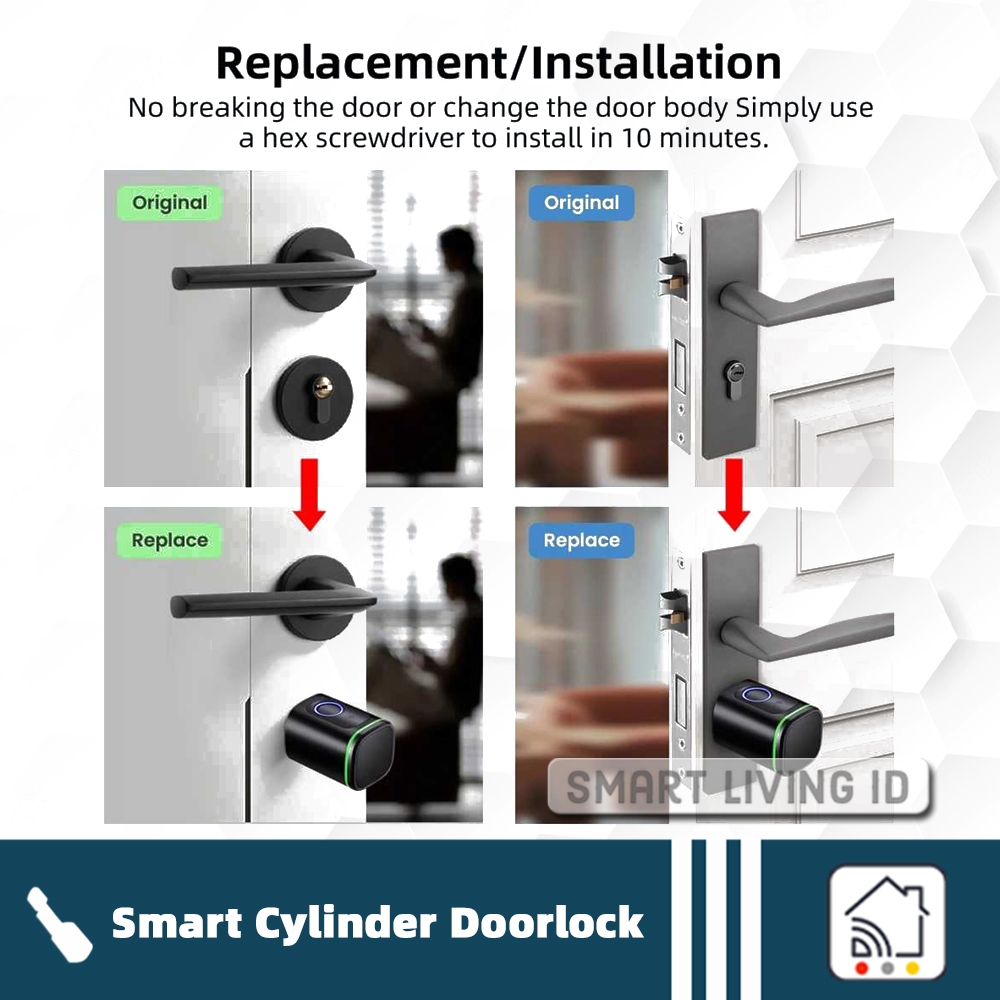 Silinder Kunci Pintu Rumah Tuya Smart Cylinder Door Lock Doorlock BLE Bluetooth Smart Life App