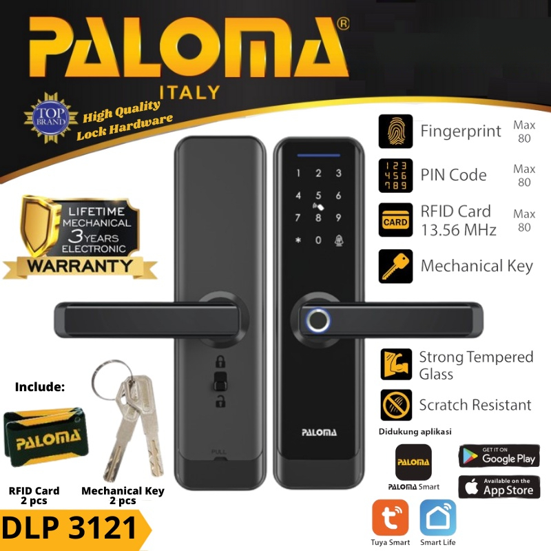 Digital Lock Smart Home PALOMA DLP 3121 Kunci Pintu Door Handle WiFi PASSWORD FINGERPRINT