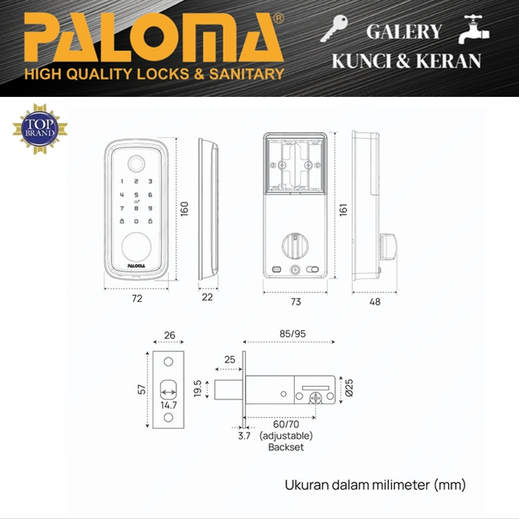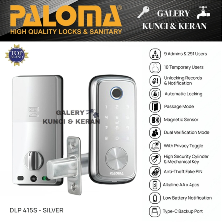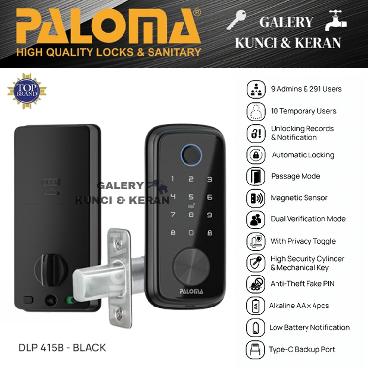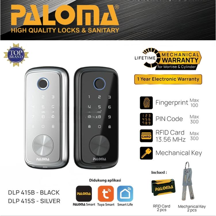 PALOMA DLP 415 Digital Lock Smart Home Door Kunci Pintu 415B 415S Deadbolt Wifi Matte Black Silver