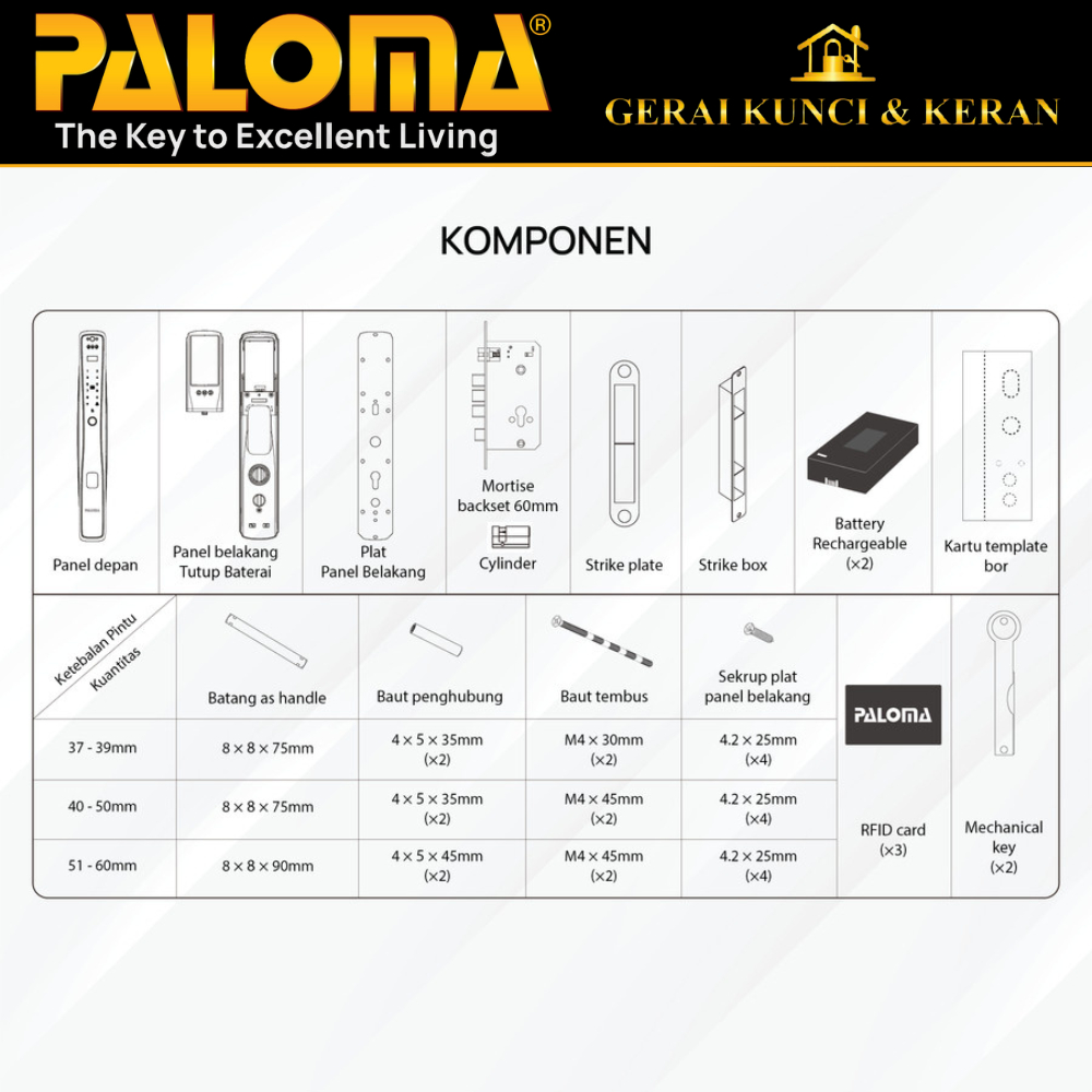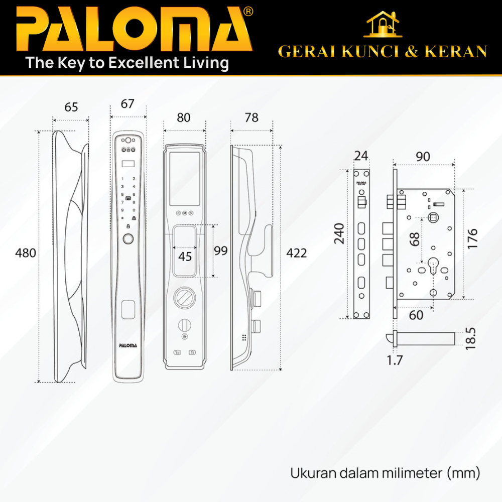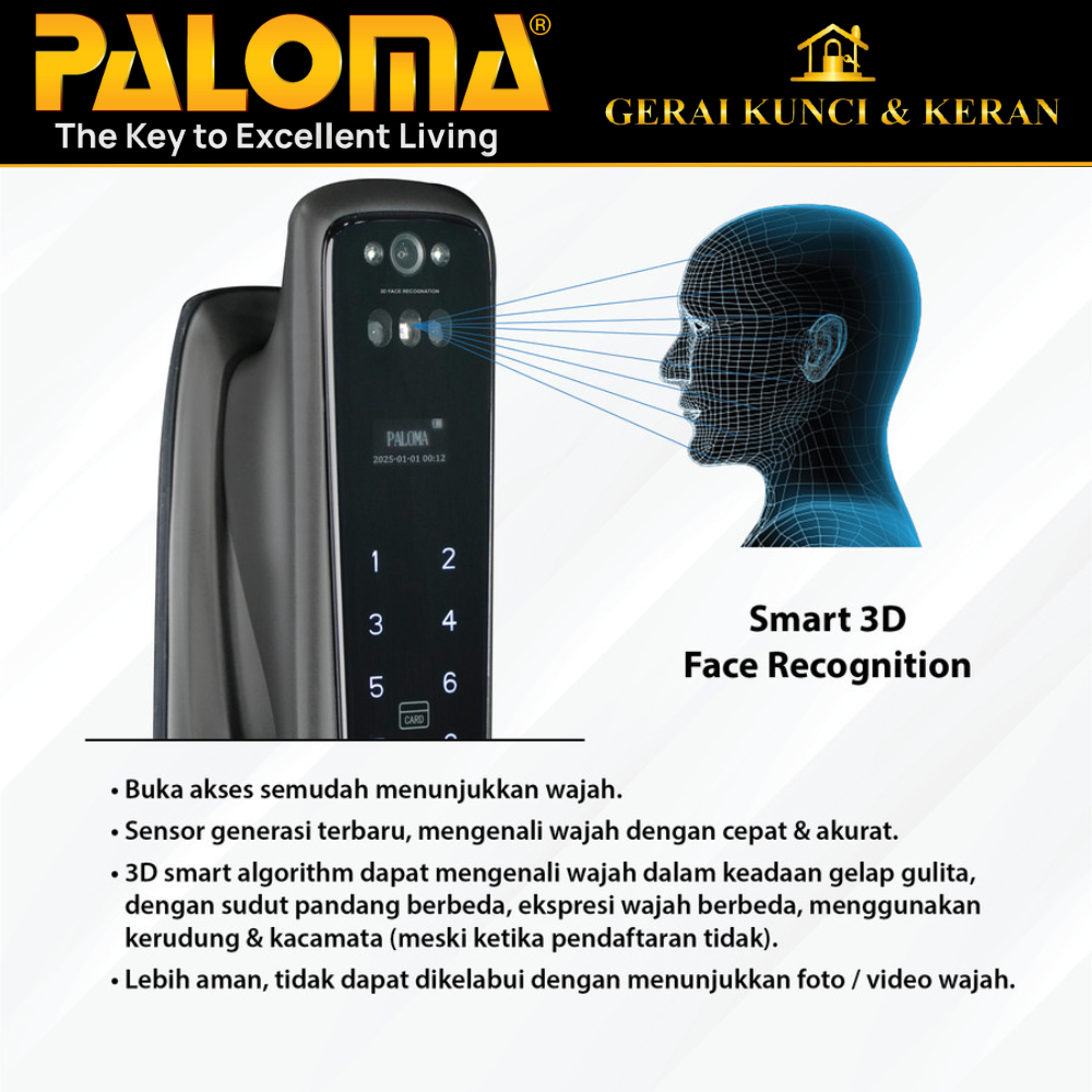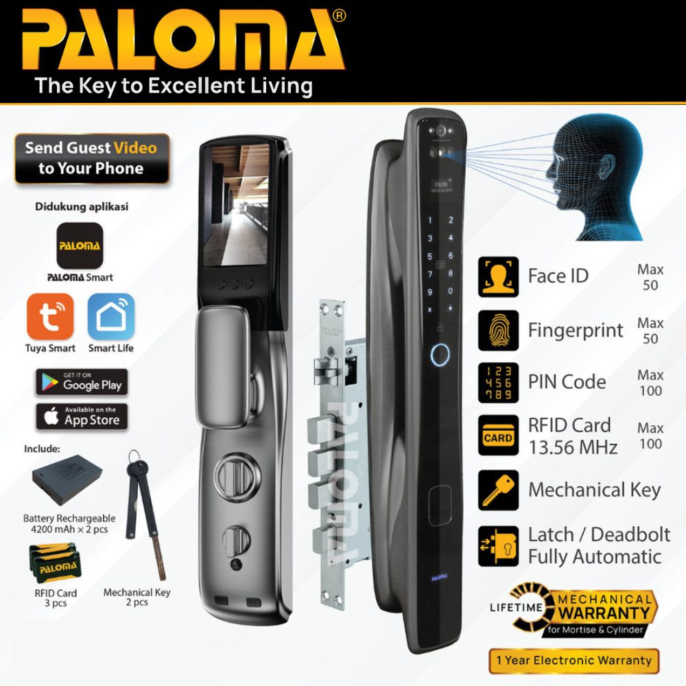 PALOMA DLP 6001GM 6001DGM Smart Lock Kunci Pintu Digital Lock Smart Door Lock Smart Home Kunci Pintar 3D Face ID FaceID