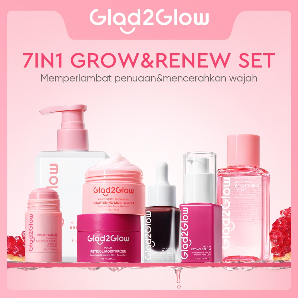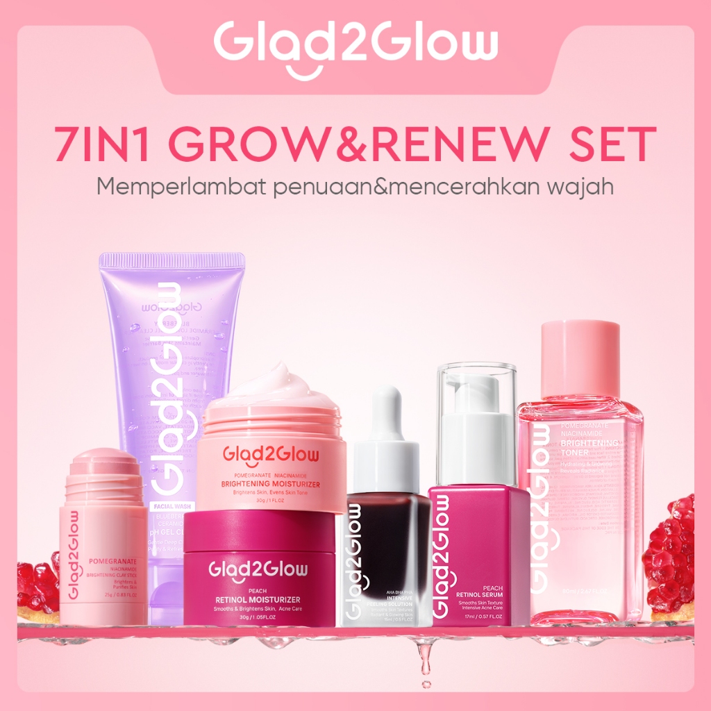 [Toko Resmi] Glad2Glow 7pcs 7in1 bundle - Soothing Brightening toner+Brightening Moisturizer+Cleanser+Brightening Serum+