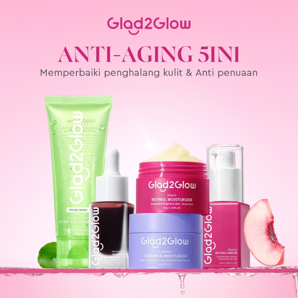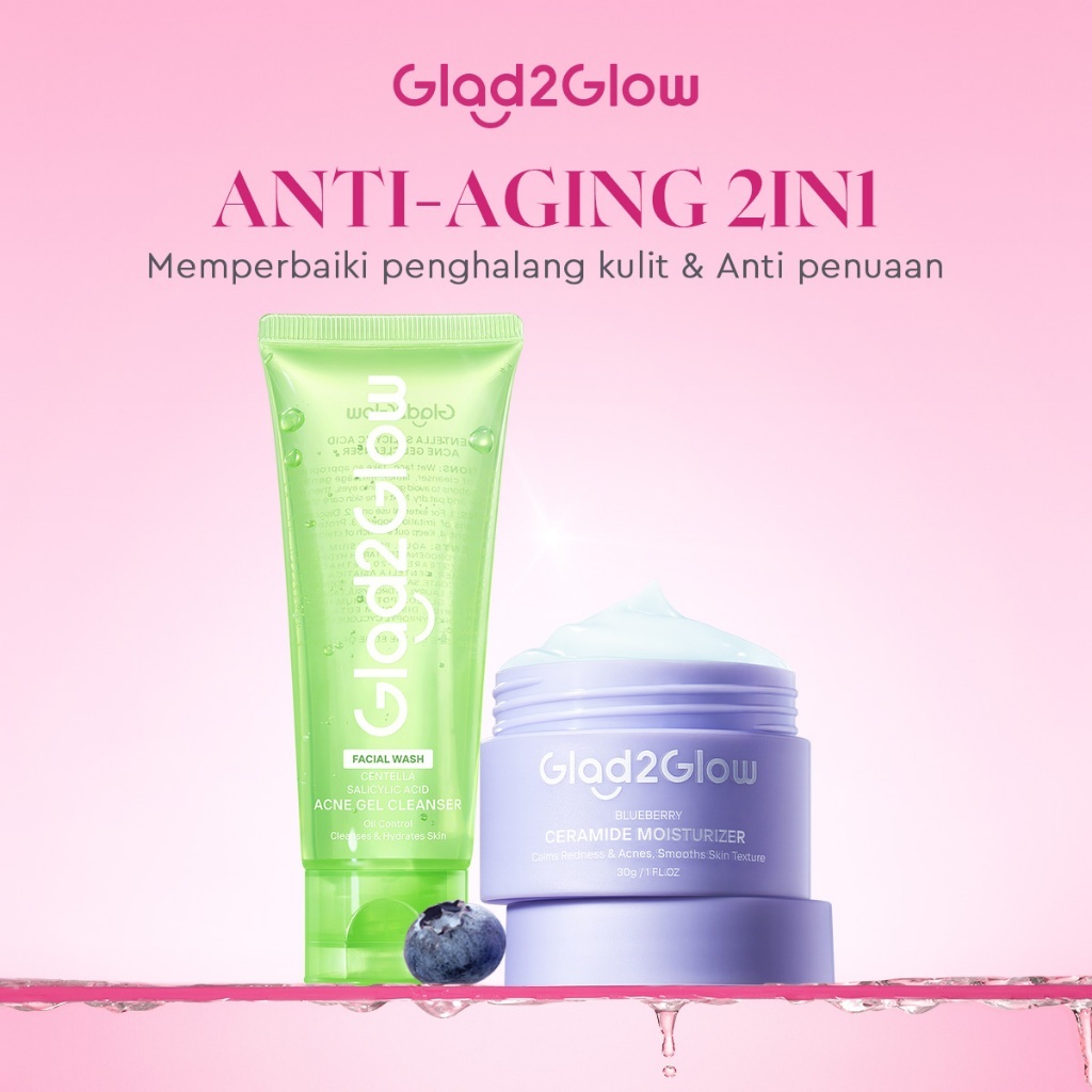 [Toko Resmi]ANTI-AGING SET-Glad2Glow Bundle all in 1 - 2/3/4/5 PCS Blueberry Moisturizer+Blueberry Ceramide Low pH Gel C