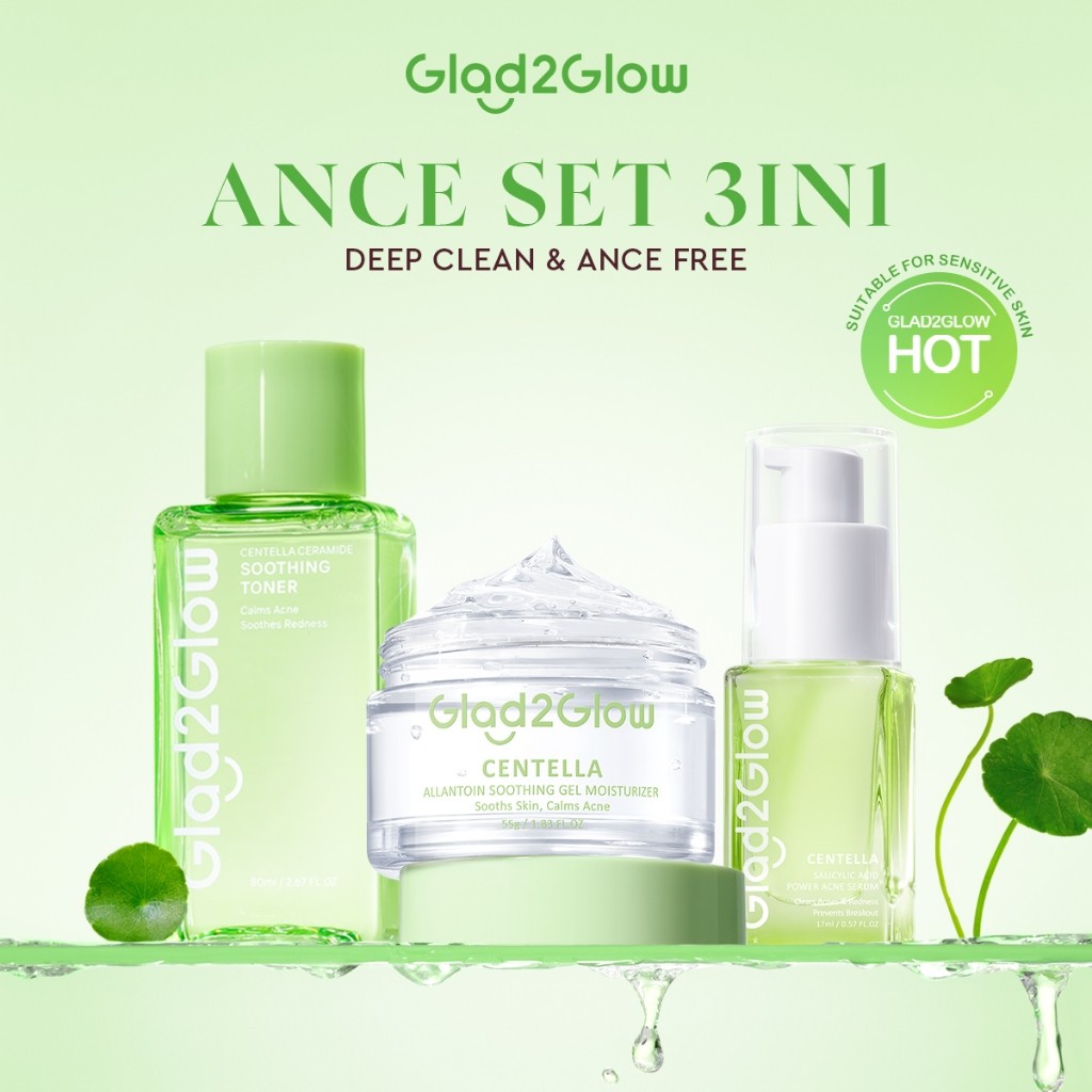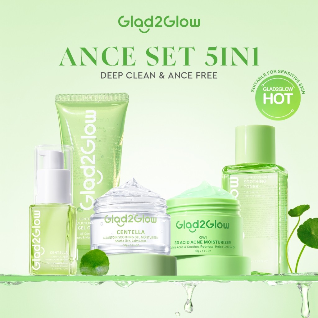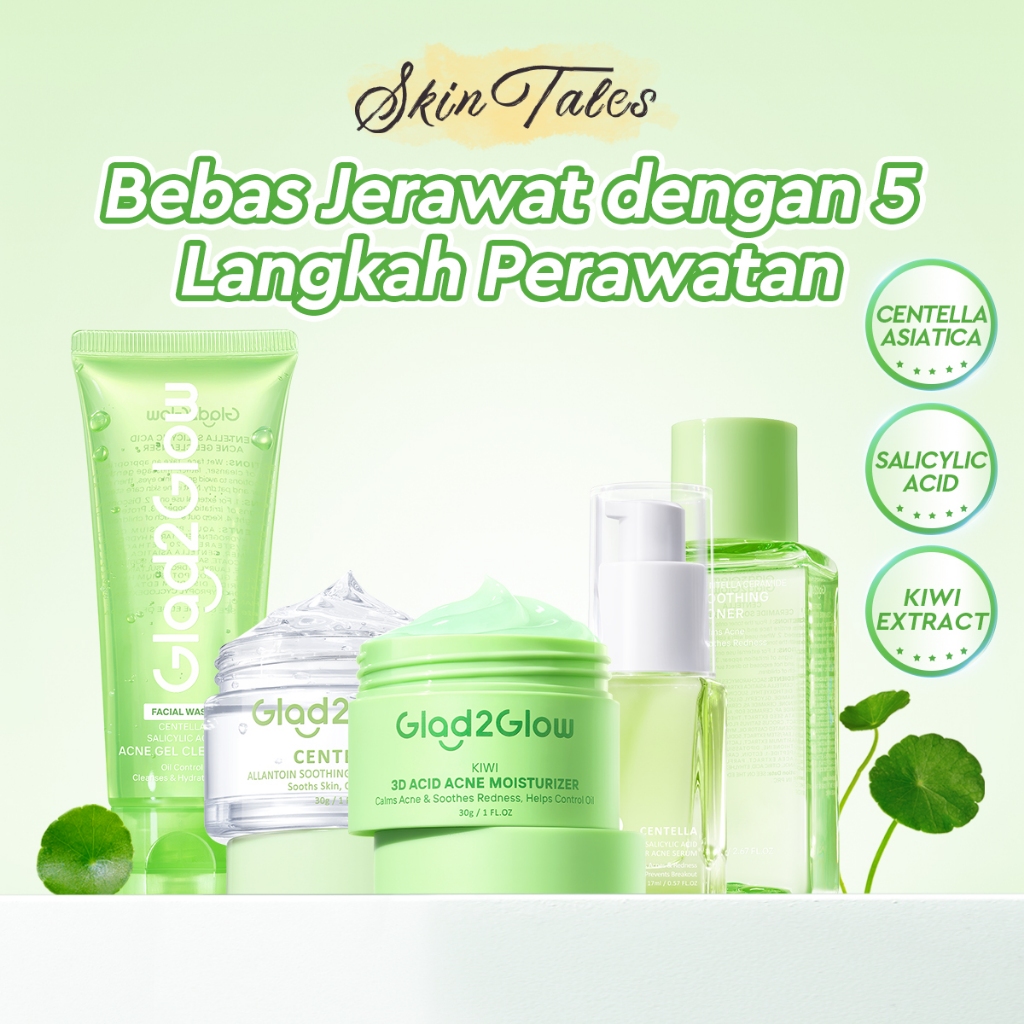 [ 100%ORI ]Glad2Glow Acne Care bundle all in 1 - 3/4/5 PCS Skincare Paket-Soothing toner+Centella Moisturizer+ Centella