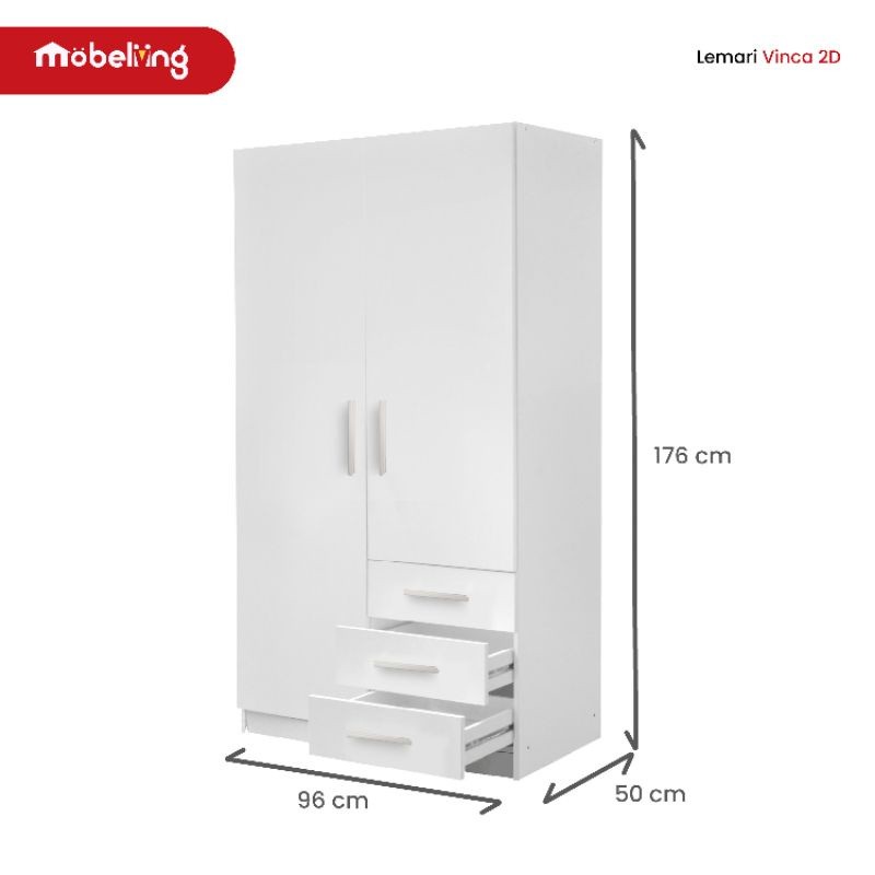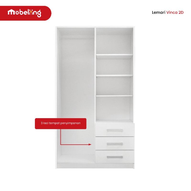 Mobeliving - Lily 2D Furniture Lemari 2 Pintu Full Putih Rak