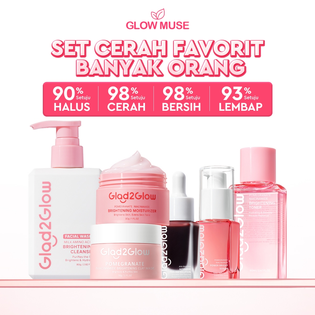 [100% ORI]Glad2Glow Glowing Renew bundle all in 1 6in1-Brightening toner+Brightening Moisturizer+Cleanser+Brightening Se