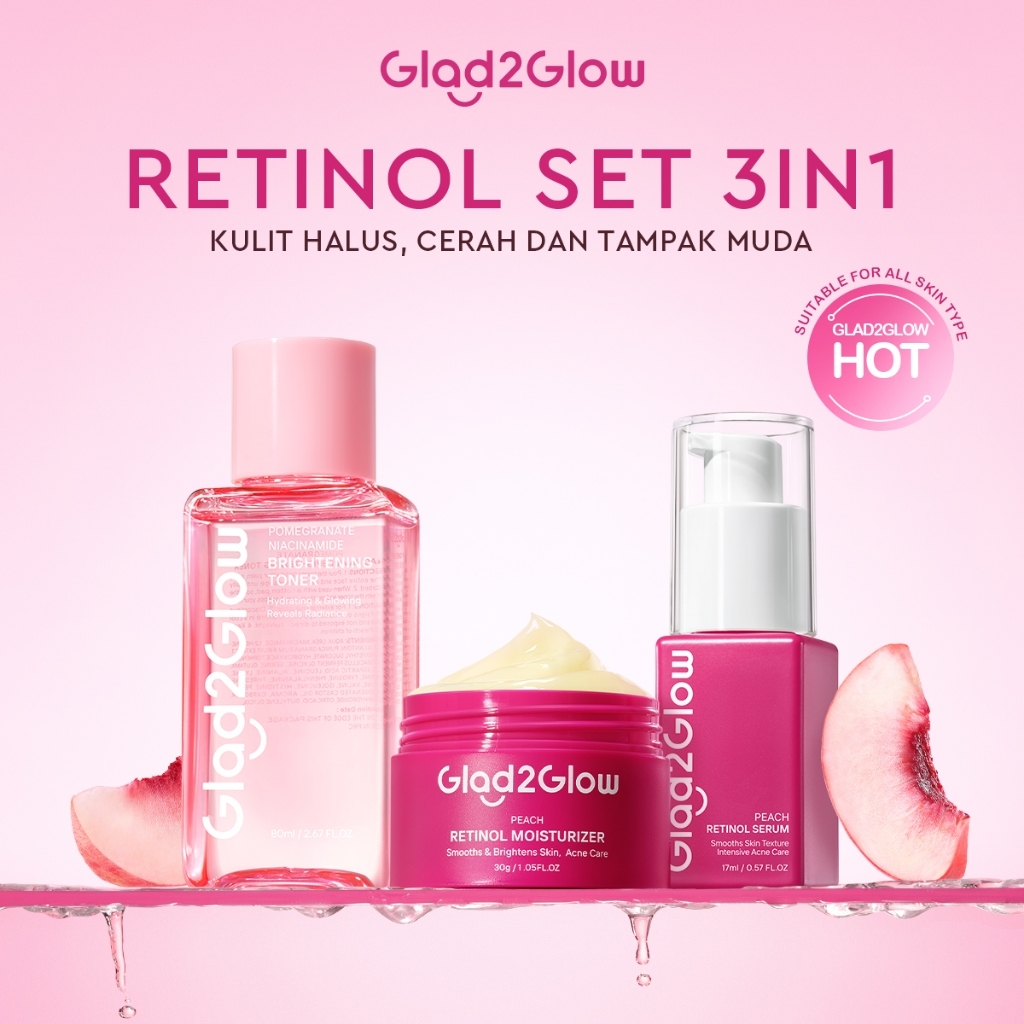 [100%ORI]GLAD2GLOW RETINOL SET ALL IN 1 bundle peach moisturizer skin barrier Retinoid Memudarkan Garis Halus Memudarkan