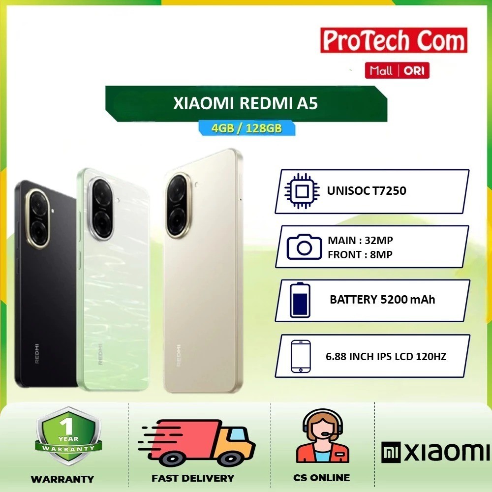 NEW XIAOMI REDMI A5 4GB 128GB UNISOC T72506 OCTA CORE PROCESSOR ANTI LEMOT