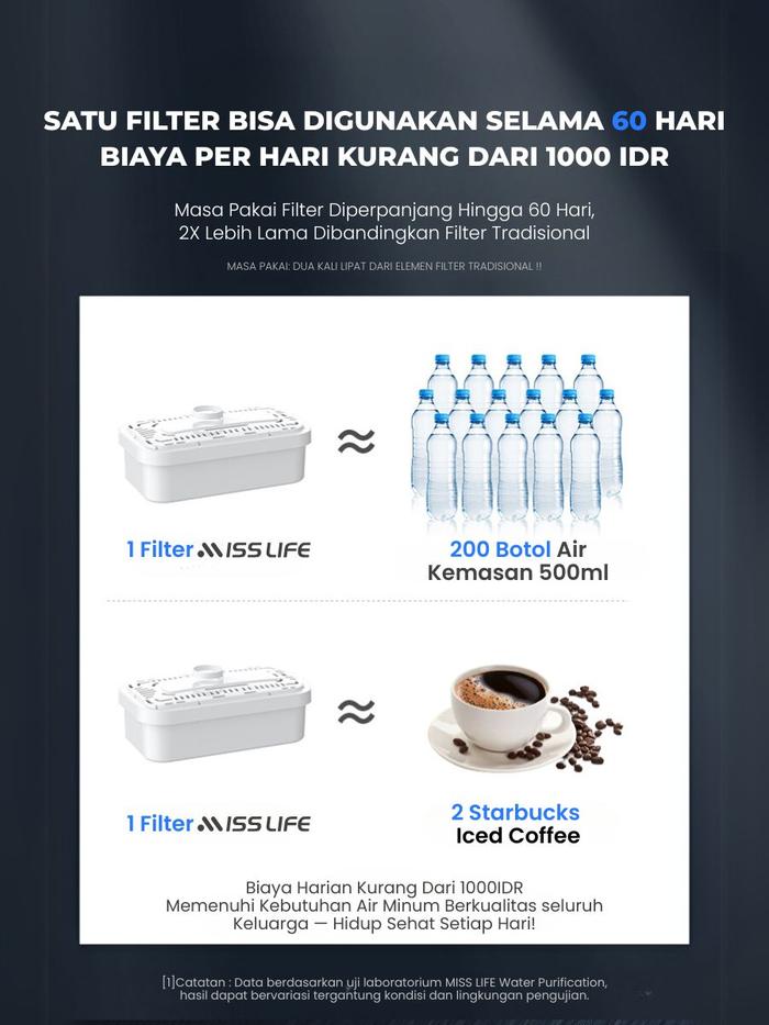 MISS LIFE Teko Filter Air Minum dengan Filter Penyaring Air, Nikmati Air Jernih Bebas Kotoran, Minum