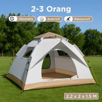 Tenda Camping Lipat Otomatis Quick Opening 2 Pintu Tahan Angin dan Hujan 2-3 Orang (Beige)