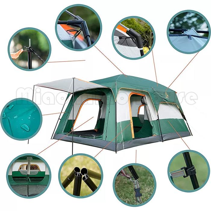 8-12 orang Tenda camping Tenda Tahan Air Lapisan Ganda Pertemuan Keluarga Tenda Besar Portable