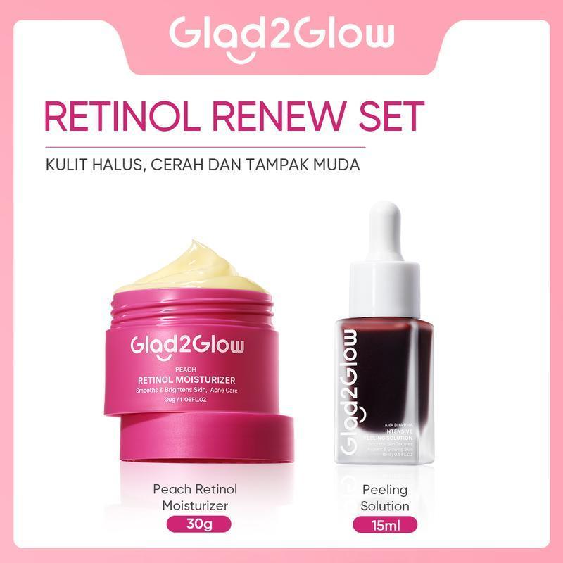 [ 100%ORI ]Glad2Glow DAY & NIGHT RENEW 4 in 1 SET Brightening Serum+Brightening Moisturizer+Peach Retinol Moisturizer+Pe