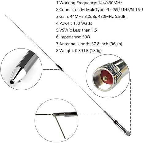 Base Radio Antenna 770R 38 Inch VHF/UHF 144/430MHz Car Radio Antenna