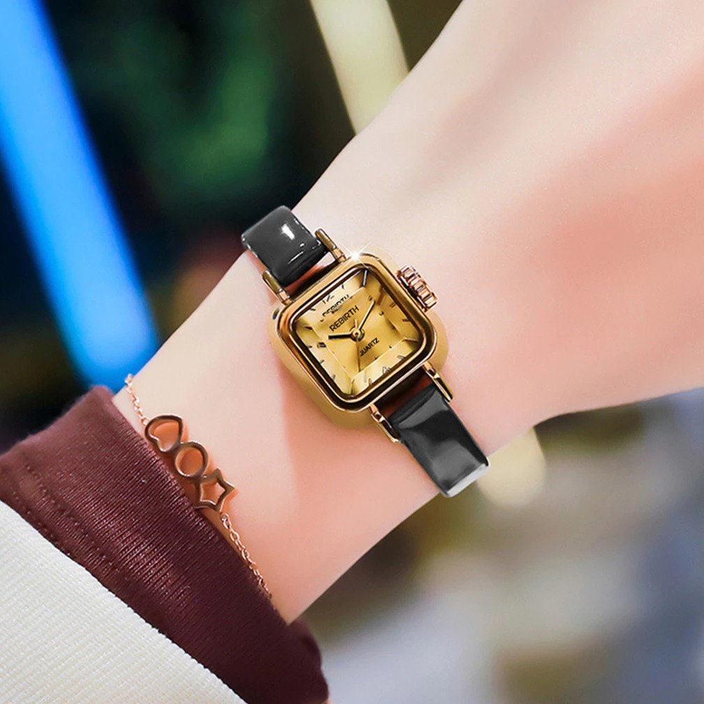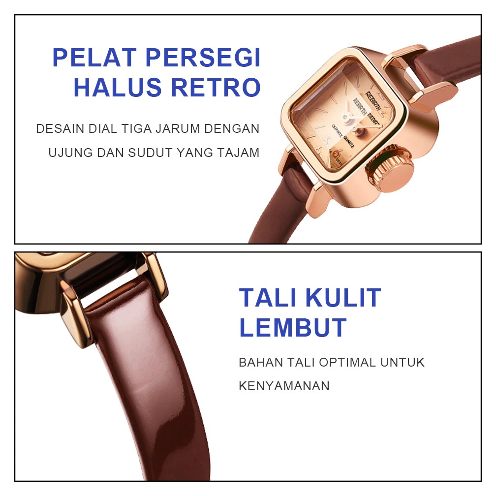 Jam tangan - jam tangan cewek - REBIRTH Jam Tangan Wanita Korea Antik Persegi Mini Kuarsa Tali Kulit Jam Tangan