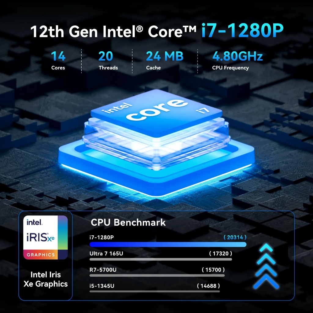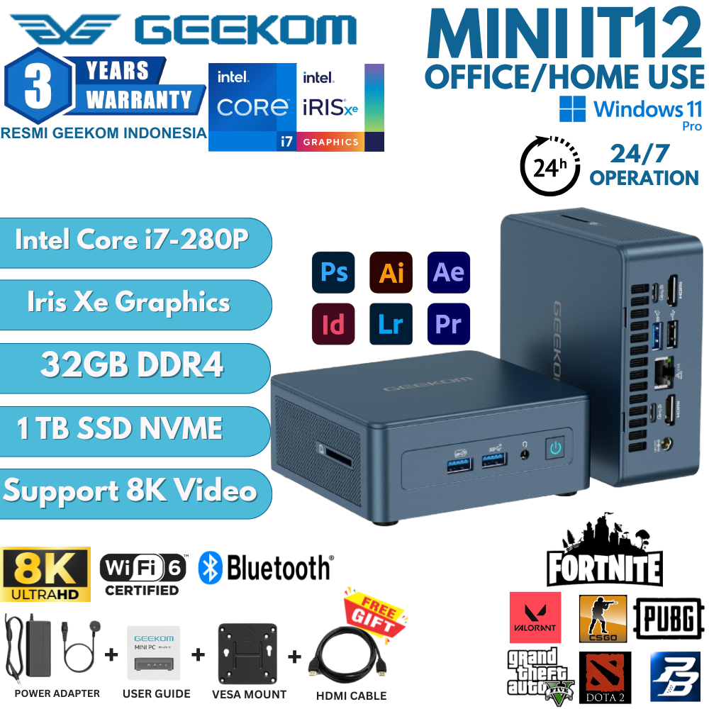 Mini PC Geekom IT12 i7 1280P RAM 32GB DDR4 1TB SSD NVME Windows 11 Pro PC Mini Gaming Upgradeable