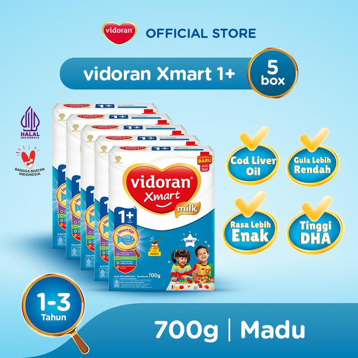 vidoran Xmart 1+ Madu 700gr Susu Pertumbuhan Anak 1-3 Tahun - 5 box (Bubuk) Exp: 1026