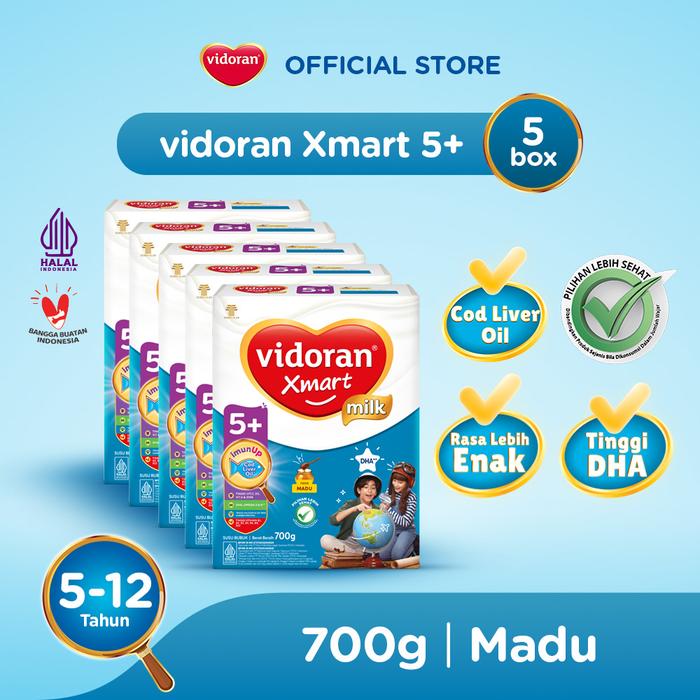 vidoran Xmart 5+ Madu 700gr Susu Formula Pertumbuhan Anak 5-12 Tahun - 5 box - Exp : 11.2027