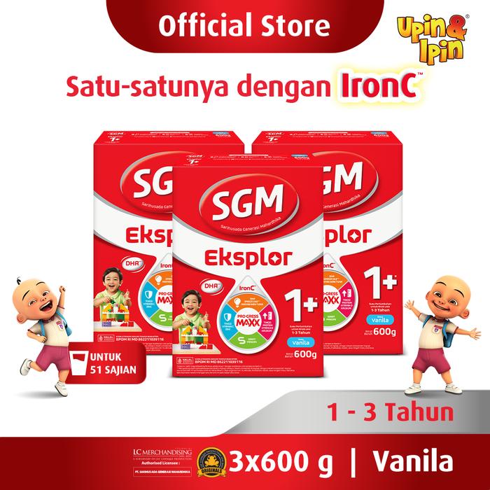 3x600GR SGM Eksplor 1+ Dengan IronC Rasa Vanila Susu Pertumbuhan