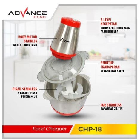 Advance Food Chopper Penggiling Daging Sayur dan Buah 2L 350Watt CHP-18