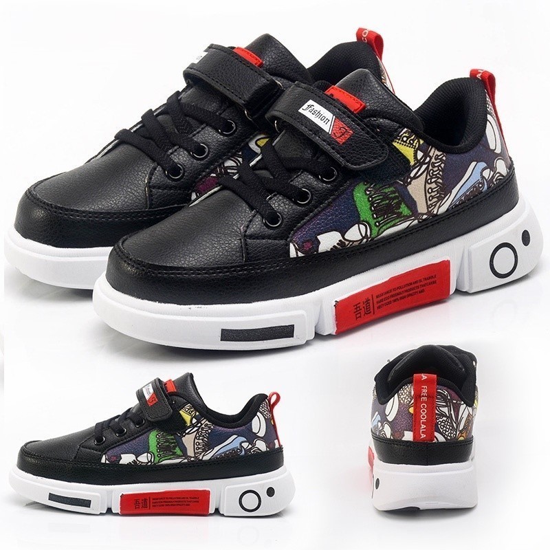 Sepatu Sneakers Warna Hitam Putih Motif Kartun Aneka Ukuran Untuk Anak