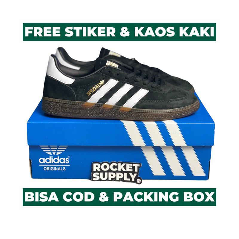 [ 100% BARU ] Adds Handball Spezial Black White / Hitam Garis Putih