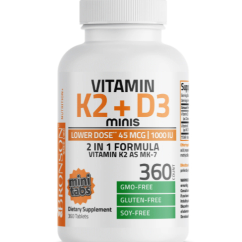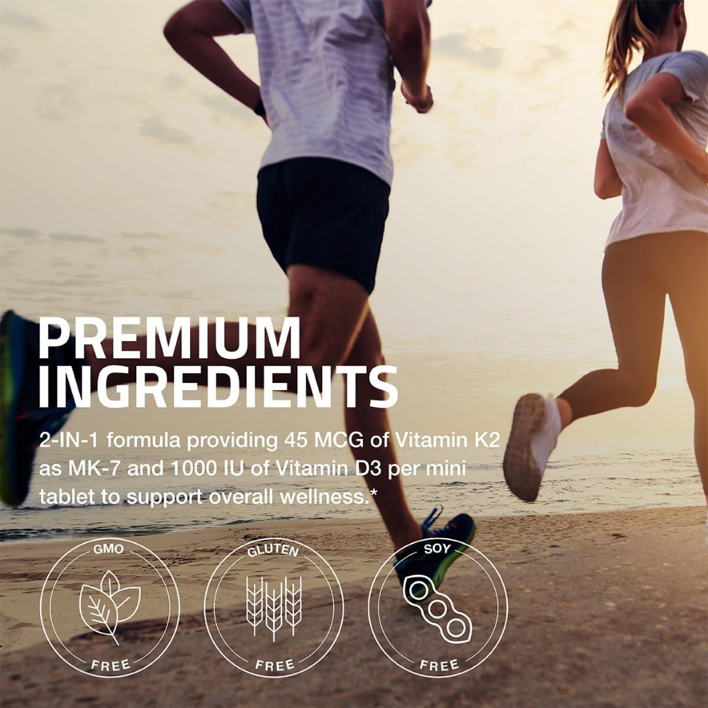 Bronson Vitamin 1000IU D3 + 45mcg K2 MK7 | Mini Tablets | Non GMO | Gluten & Soy Free